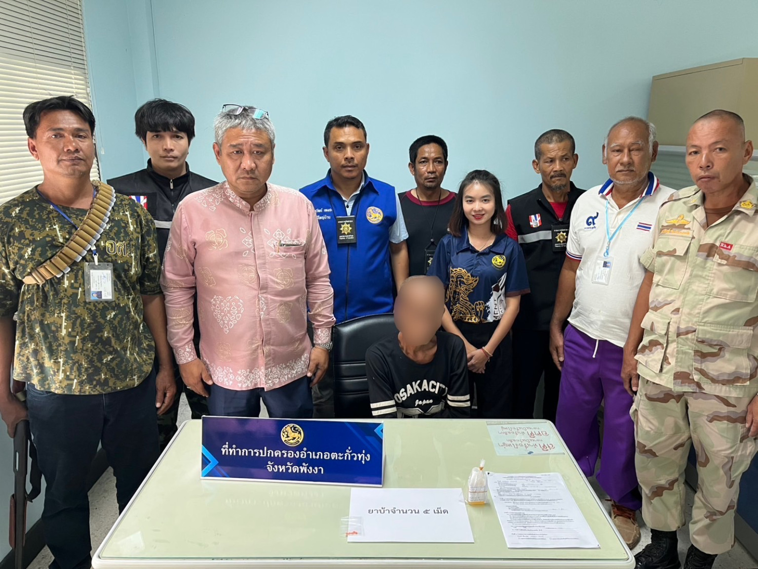 จากนั้นเจ้าหน้าที่ได้ควบคุมตัวผู้ต้องหาพร้อมของกลาง ทำบันทึกจับกุมที่ว่าการอำเภอตะกั่วทุ่ง ก่อนนำส่งพนักงานสอบสวน สภ.ตะกั่วทุ่ง เพื่อดำเนินคดีตามกฎหมายต่อไป ปฏิบัติการดังกล่าวเป็นส่วนหนึ่งของการขับเคลื่อนนโยบาย “No Drugs No Dealers” และ “8 Quick Wins 3 ไร้ทุกข์ 5 สร้างสุข” มุ่งสร้างชุมชนเข้มแข็งปลอดยาเสพติด