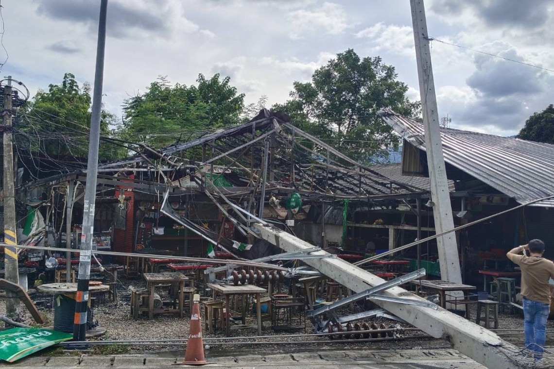 เสาไฟฟ้า เสียหายรวม 52 ต้น แบ่งเป็นเสาแรงสูง 115 kV จำนวน 24 ต้น, เสาแรงสูง 22 kV จำนวน 23 ต้น และเสาแรงต่ำ 9 เมตร จำนวน 5 ต้น