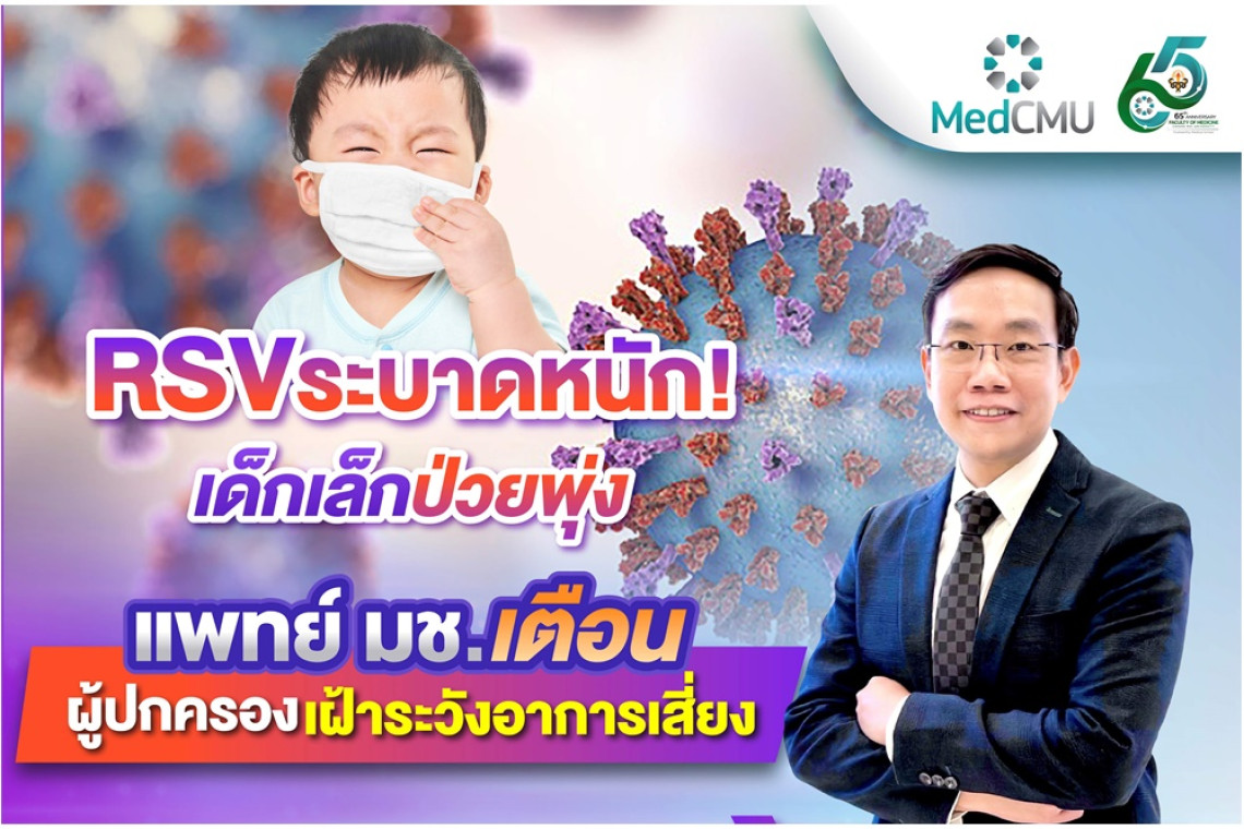 รศ.นพ.มงคล เหล่าอารยะ อาจารย์ประจำภาควิชากุมารเวชศาสตร์ คณะแพทยศาสตร์ มหาวิทยาลัยเชียงใหม่ เปิดเผยว่า “ในช่วงหน้าฝน ไวรัสหลายตัวจะกระจายได้ง่าย เนื่องจากอุณหภูมิ ความชื้นในอากาศค่อนข้างเหมาะสม เมื่อเปิดเทอมเด็กมาอยู่รวมกัน ทำให้โอกาสที่จะติดเชื้อไวรัสมากด้วย โดยเฉพาะโรคยอดฮิต คือ การติดเชื้อไวรัส RSV (Respiratory Syncytial Virus) ซึ่งเป็นโรคติดเชื้อทางเดินหายใจที่พบบ่อยในเด็กโดยเฉพาะเด็กเล็กที่มีอายุน้อยกว่า 5 ปี สามารถทำให้เกิดการติดเชื้อระบบทางเดินหายใจทั้งส่วนบนและส่วนล่าง การระบาดของเชื้อนี้มักพบในฤดูฝนและฤดูหนาวในประเทศไทยอาการเริ่มต้นจะเหมือนไข้หวัดธรรมดา คือ ไข้ ไอ จาม น้ำมูกไหล โดยลักษณะของไข้อาจจะมีไข้สูงหรือไข้ต่ำ ๆ ก็ได้ แต่หากการดำเนินโรครุนแรงมากขึ้นเป็นการติดเชื้อทางเดินหายใจส่วนล่างจะมีอาการของภาวะหลอดลมอักเสบ ปอดบวมหรือปอดอักเสบ และอาจทำให้เกิดภาวะหายใจล้มเหลวได้ อาการที่ต้องเฝ้าระวัง คือ ผู้ป่วยที่ติดเชื้อ RSV และมีอาการไอมาก เสมหะมาก หายใจมีเสียงวี๊ดหรือมีเสียงครืดคราด มีอาการหอบเหนื่อยหายใจเร็วอกบุ๋ม ควรรีบมาพบแพทย์ ป้องกันได้โดย ให้เด็กล้างมือบ่อยๆ สวมหน้ากากอนามัยทุกครั้ง เลี่ยงการไปในพื้นที่แออัด ปิดปากและจมูกเมื่อไอ จาม เลี่ยงการสัมผัสใบหน้า ไม่ใช้สิ่งของร่วมกับผู้อื่น ปัจจุบันยังไม่มีวัคซีนที่ป้องกันการติดเชื้อ RSV อีกทั้งยังไม่มียารักษาเชื้อไวรัส RSV โดยตรงอีกด้วย การรักษาเป็นเพียงการรักษาแบบประคับประคองตามอาการ เด็กกลุ่มเสี่ยงที่อาจมีอาการรุนแรง ที่อายุต่ำกว่า 2 ปี เช่น ทารกคลอดก่อนกำหนด ทารกที่เป็นโรคปอดเรื้อรัง หรือหัวใจพิการแต่กำเนิด อาจจะพิจารณาให้ภูมิคุ้มกันสำเร็จรูปในการป้องกันการติดเชื้อ RSV ได้คำแนะนำสำหรับการป้องกันโรคติดเชื้อในเด็กเล็ก ผู้ปกครองควรดูแลลูก และบุตรหลานที่อายุต่ำกว่า 2 ปี ในเรื่องของอาหาร น้ำดื่ม และถ้าไม่จำเป็นไม่ควรให้ลูกไปอยู่ในสถานที่แออัด ฝึกให้ใส่หน้ากากอนามัยสม่ำเสมอ รวมถึงปลูกฝัง และฝึกให้ลูกใช้ช้อนกลางขณะรับประทานอาหารทุกครั้งไม่ว่าจะที่โรงเรียนหรือที่บ้านก็ตาม”
