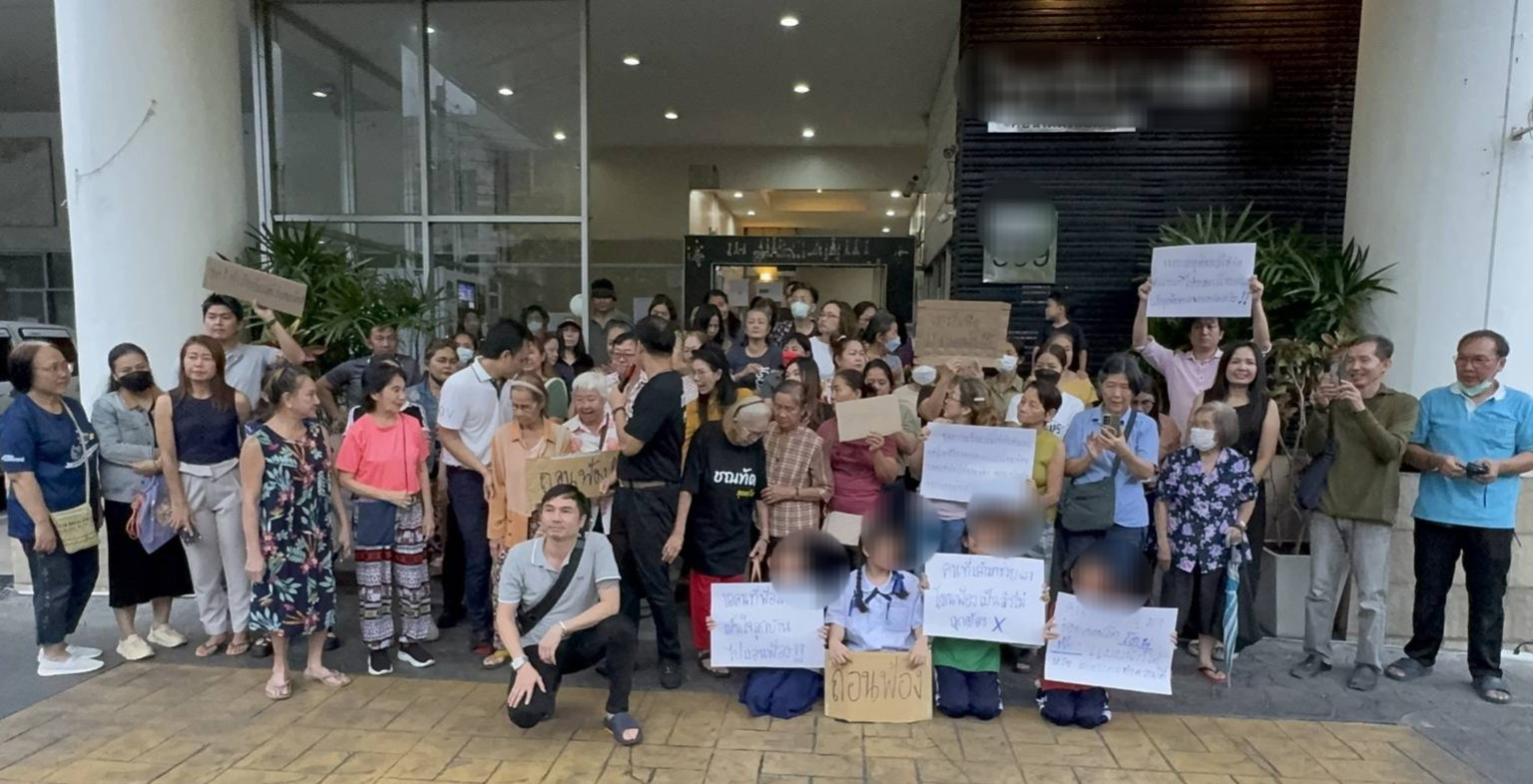 ต่อมาเวลา 18.30 น.นายชณทัต และลูกบ้านคอนโดได้ออกมารวมตัวแสดงสัญลักษณ์ เพื่อเรียกร้องขอความเป็นธรรม ให้แก่ผู้ที่ถูกฟ้อง