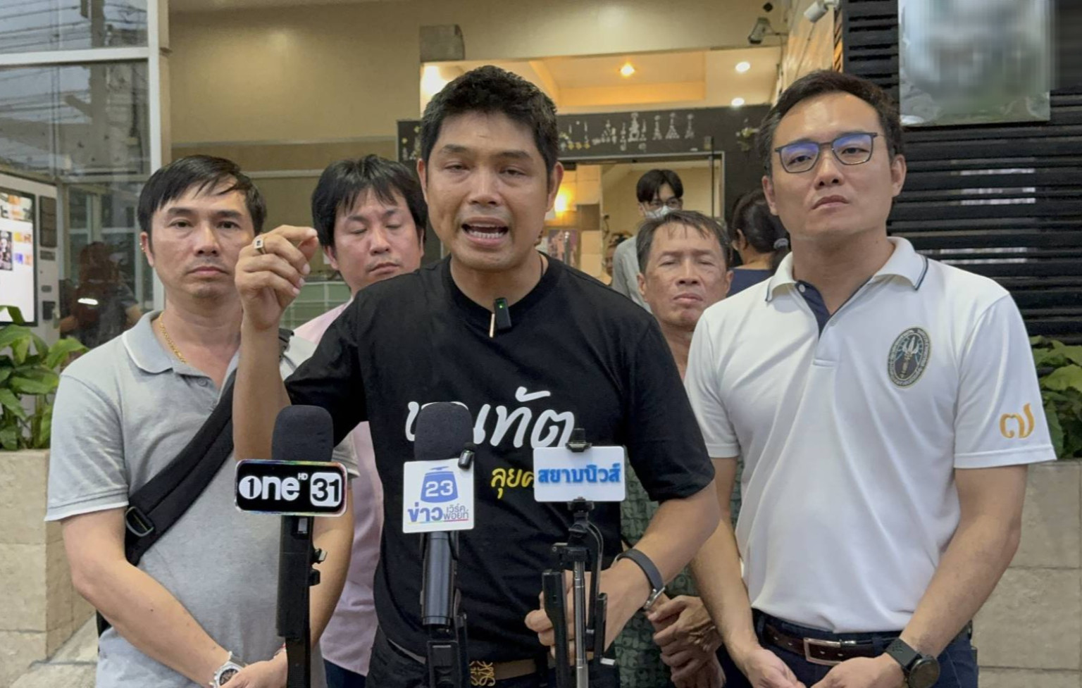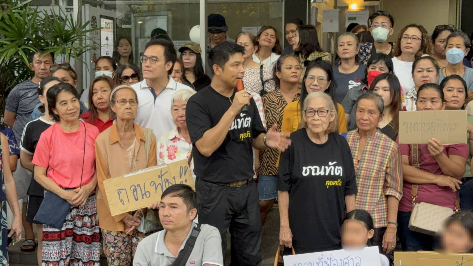 โดยนายชณทัต กล่าวว่า วันนี้ตนมารวมตัวเพื่อแสดงพลัง เนื่องจากตนได้เข้ามาช่วยเหลือทางคอนโดจนสามารถกลับมาใช้งานได้ แต่กับถูกฟ้อง รวมถึง คุณหมวยพิธีกร รายการโหนกระแส และ ลูกบ้านคอนโดที่ไปออกรายการ 3 คน ตนมองว่ามันไม่สมควร สิ่งนึงคือการที่เรามาแถลงวันเนี้ยมาประชาชนมาหลักร้อยคนวันนี้ เพื่อที่จะอธิบายถือป้ายเพื่อที่จะบอกกับศาลว่าพวกตนไม่ผิดพวกตนมาช่วยมาทำความดี
