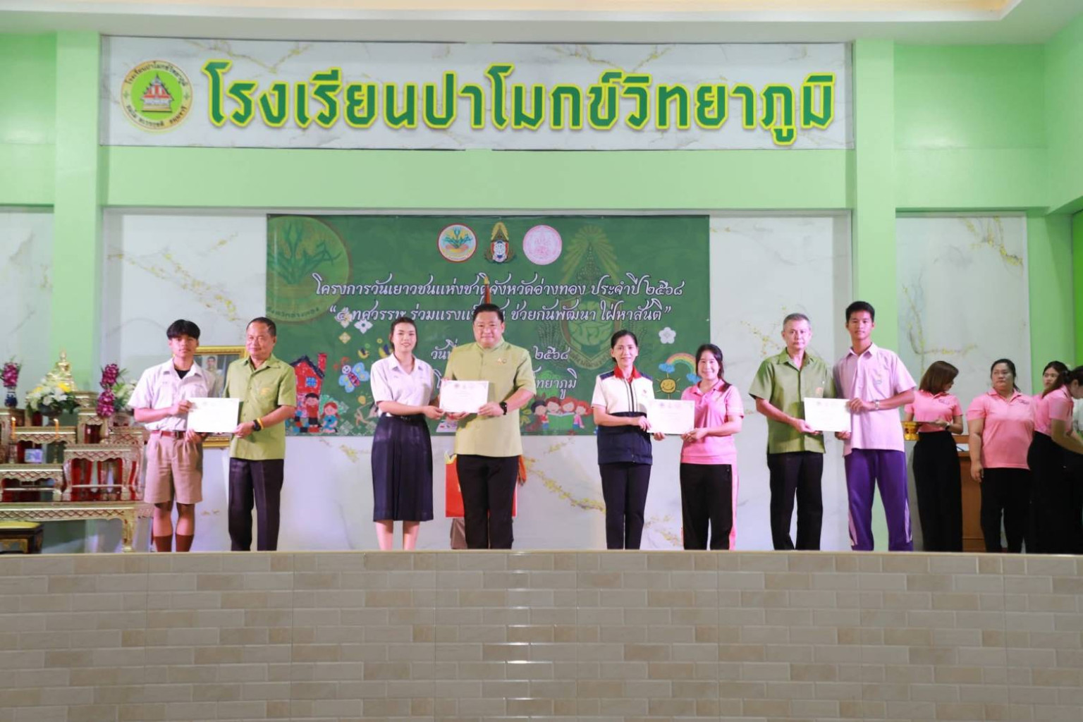 วันที่ 10 ก.ย.2568 เวลา 09.30 น. ณ หอประชุมโรงเรียนปาโมกข์วิทยาภูมิ ต.ป่าโมก อ.ป่าโมก จ.อ่างทอง นานชวนินทร์ วงศ์สถิตจิรกาล ผู้ว่าราชการจังหวัดอ่างทอง เป็นประธานในพิธีเปิดโครงการวันเยาวชนแห่งชาติจังหวัดอ่างทอง ประจำปี 2568 "4 ทศวรรษ ร่วมแรงแข็งขัน ช่วยกันพัฒนา ใฝ่หาสันติ" พร้อมมอบเกียรติบัตรแก่เด็กและเยาวชนผู้ได้รับการคัดเลือกเป็นเยาวชนดีเด่นจังหวัดอ่างทองประจำปี 2518 จำนวน 2 คน สภาสังคมสงเคราะห์แห่งประเทศไทยในพระบรมราชูปถัมภ์, มอบประกาศเกียรติคุณเชิดชูเกียรติแก่องค์กรและบุคคลที่ร่วมส่งเสริมและสร้างคุณประโยชน์แก่เด็กและเยาวชน, ประกาศเกียรติคุณเชิดชูเกียรติแก่เด็กและเยาวชนที่ร่วมส่งเสริมสนับสนุนและสร้างคุณประโยชน์ต่อเด็กและเยาวชนโดยมีพระสุวรรณวชิราทร เจ้าคณะจังหวัดอ่างทอง เจ้าอาวาสวัดอ่างทองวรวิหาร, พระศรีวิสุทธิโสภณ เจ้าคณะอำเภอเมืองอ่างทอง เจ้าอาวาสวัดป่าโมกวรวิหาร , พระครูวิมลพัฒนาภรณ์ เจ้าอาวาสวัดพัฒนา (ดอนกร่าง) รองผู้ว่าราชการจังหวัดอ่างทอง ปลัดจังหวัดอ่างทอง หัวหน้าส่วนราชการ นายอำเภอ ผู้บริหารองค์กรปกครองส่วนท้องถิ่น คณะผู้บริหารสภาเด็กและเยาวชน และเยาวชนอ่างทองข้าร่วมกิจกรรม