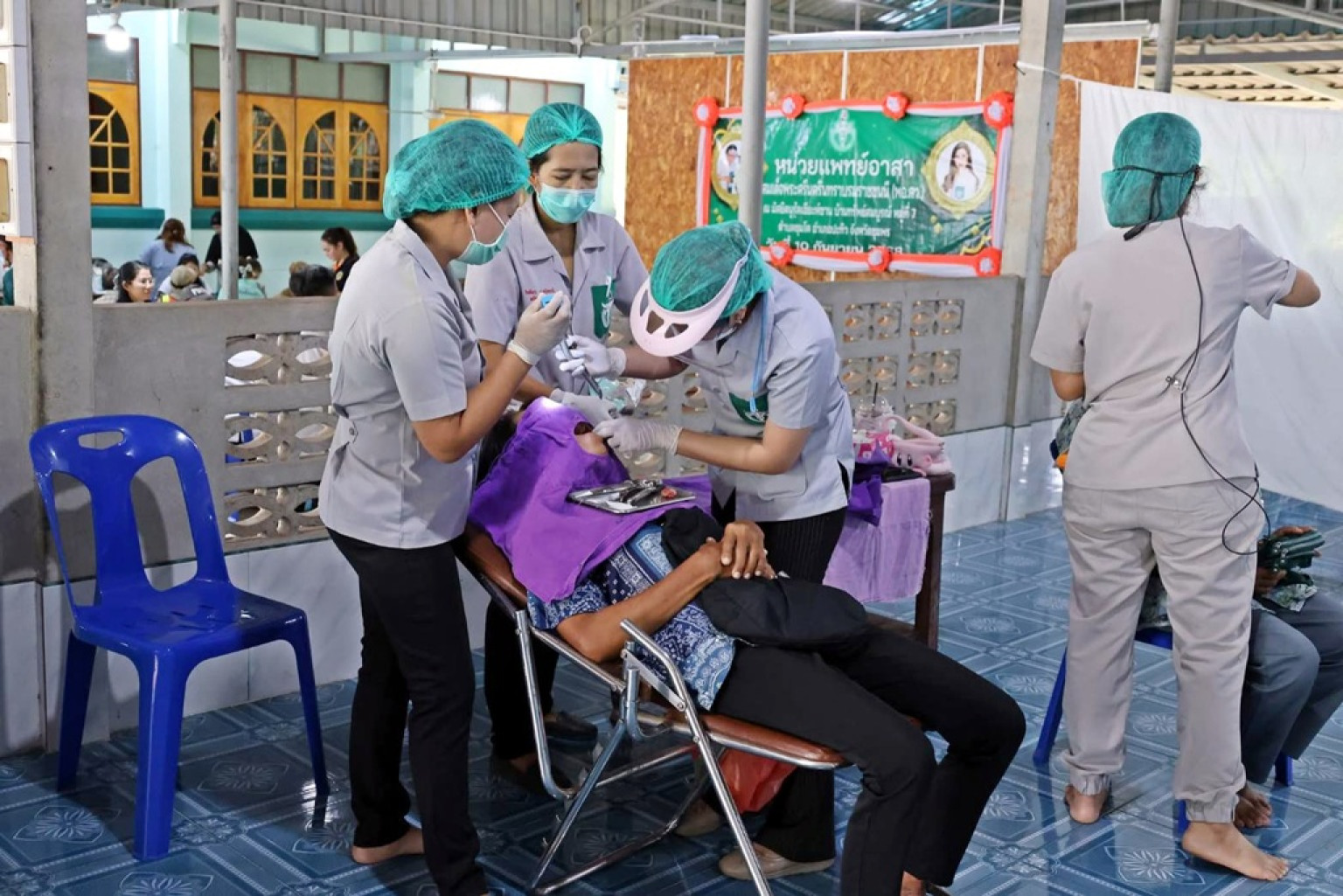 สมเด็จพระศรีนครินทราบรมราชชนนี ได้ทรงบำเพ็ญพระราชกรณียกิจ โดยเฉพาะอย่างยิ่งด้านการแพทย์ การสาธารณสุข อันเป็นคุณประโยชน์ต่อประเทศชาติและปวงชนชาวไทย นานัปการ ทั้งด้านการศึกษา การสาธารณสุขและการสังคมสงเคราะห์ประชาชนผู้ยากไร้มาโดยตลอด กับพระราชจริยวัตรที่พระองค์ทรงเอาพระทัยใส่ และดูแลราษฎรผู้เจ็บไข้ได้ป่วยและผู้ยากไร้ และทรงจัดตั้งมูลนิธิแพทย์อาสาสมเด็จพระศรีนครินทราบรมราชชนนี มีหน่วยทันตกรรมเคลื่อนที่ ซึ่งมีพลังของอาสาสมัครอยู่ทุกจังหวัด ทุกอำเภอทุกตำบล ตลอดจนถึงระดับหมู่บ้าน ที่พร้อมจะสนองพระราชดำริ ในการออกหน่วยให้บริการทางด้านสุขภาพ ด้านสังคมสงเคราะห์ ด้านการศึกษาและด้านการสาธารณกุศลต่างๆ แก่ประชาชน โดยเฉพาะอย่างยิ่งในเขตทุรกันดาร และห่างไกล ทรงจัดตั้งหน่วยแพทย์อาสาสมเด็จพระศรีนครินทราราชชนนี เมื่อพุทธศักราช 2512 พร้อมกันด้วยจัดตั้งสถานีรักษาทางวิทยุ ทรงโปรดให้รักษาพยาบาลโรคเฉพาะทาง และทันตกรรม