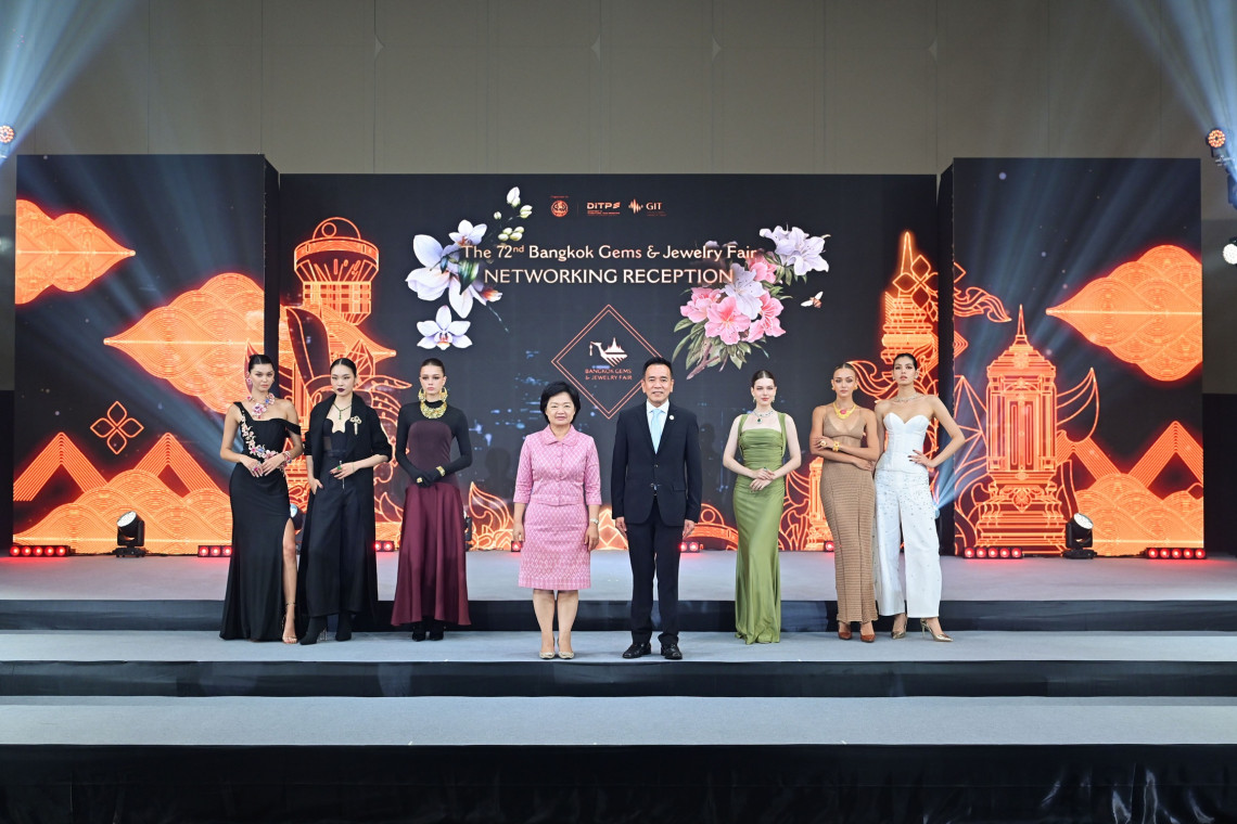 กรมส่งเสริมการค้าระหว่างประเทศ (DITP) ผู้จัดงานหลักร่วมกับ สถาบันวิจัยและพัฒนาอัญมณีและเครื่องประดับแห่งชาติ (องค์การมหาชน) (GIT) ผู้ร่วมจัดงาน ได้จัดกิจกรรม Networking Reception ในงานแสดงสินค้า “Bangkok Gems and Jewelry Fair” ครั้งที่ 72 ในวันที่ 9 กันยายน 2568 ณ ห้องเพลนารี ศูนย์การประชุมแห่งชาติสิริกิติ์ โดยมีนักธุรกิจในอุตสาหกรรมอัญมณีและเครื่องประดับไทยและทั่วโลกเข้าร่วมงานอย่างคับคั่ง กิจกรรม Networking Reception นับว่าเป็นไฮไลท์สำคัญของงานบางกอกเจมส์ เพื่อสร้างโอกาสพบปะ พูดคุยและเจรจาธุรกิจกับผู้ซื้อจากทั่วโลก