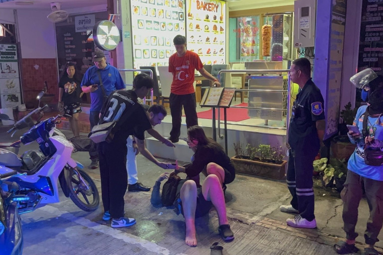 ที่เกิดเหตุมีนักท่องเที่ยว พนักงาน มุงดูเหตุการณ์เป็นจำนวนมาก บนฟุตปาธพบร่างMR. LINWOOD LOUIS NATHAN อายุ 32 ปี สัญชาติอังกฤษ ได้รับบาดเจ็บ มีบาดแผลหูซ้ายฉีกขาด ฟกช้ำตามร่างกาย นอนรอความช่วยเหลือ เจ้าหน้าที่กู้ภัยฯจึงปฐมพยาบาลเบื้องต้น ก่อนเคลื่อนย้ายส่งโรงพยาบาลอย่างเร่งด่วน ส่วนคู่กรณีเป็นเพื่อนรักสัญชาติเดียวกัน อาศัยช่วงชุลมุนหลบหนีไปก่อนเจ้าหน้าที่ตำรวจจะมาถึง