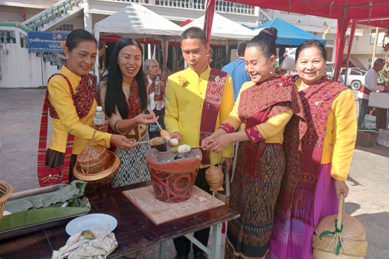 สำหรับกิจกรรมในโครงการถนนสายบุญนวพุทธศิลป์ ถิ่นเมืองน้ำดำ ประกอบด้วยการฟ้อนสักการะบูชาหลวงพ่อโพธิ์ค้ำ จากโรงเรียนผู้สูงอายุวัดใต้โพธิ์ค้ำ การแสดงศิลปวัฒนธรรมโปงลางพื้นบ้าน จากโรงเรียนเทศบาล 4 เฉลิมพระเกียรติ การมอบเกียรติบัตรครอบครัวต้นแบบต้นบุญ การทำบุญตักบาตร สักการะหลวงพ่อโพธิ์ค้ำและปาร์ตี้ข้าวจี่ เพื่อการอนุรักษ์และฟื้นฟู ให้อยู่คู่สังคมต่อไป ข้าวจี่ ถือเป็นอาหารพื้นบ้านชาวอีสาน เดิมใช้ข้าวเหนียวที่นึ่งสุก ปั้นเป็นก้อนกลมโรยด้วยเกลือแกง ใช้ไม้เสียบตรงกลางแล้วนำไปอิงถ่านไฟร้อน ผิวข้าวจี่ก็จะเกรียมมีสีเหลือง กลิ่นหอม ต่อมามีการประยุกต์เป็นข้าวจี่มูน ปั้นเป็นก้อนหรือทำเป็นแผ่น นำชุบไข่เป็ดหรือไข่ไก่ที่ใช้เครื่องตีเป็นเนื้อเดียวกัน จากนั้นนำไปอิงถ่านไฟ ก็จะให้กลิ่นหอมกรุ่นน่ารับประทาน สามารถรับประทานเป็นอาหาร และทำจำหน่าย นิยมรับประทานในฤดูหนาว และมีการจัดงานบุญข้าวจี่ตามวิถีอีสานในช่วงบุญเดือน 3 หรือบุญข้าวจี่ ซึ่งตรงกับวันมาฆบูชา ในโครงการถนนสายบุญนวพุทธศิลป์ ถิ่นเมืองน้ำดำครั้งนี้ จึงได้จัดกิจกรรมปาร์ตี้ข้าวจี่ เพื่อร่วมกันอนุรักษ์และให้อนุชนรุ่นหลังได้ร่วมสืบสานและต่อยอดด้วย