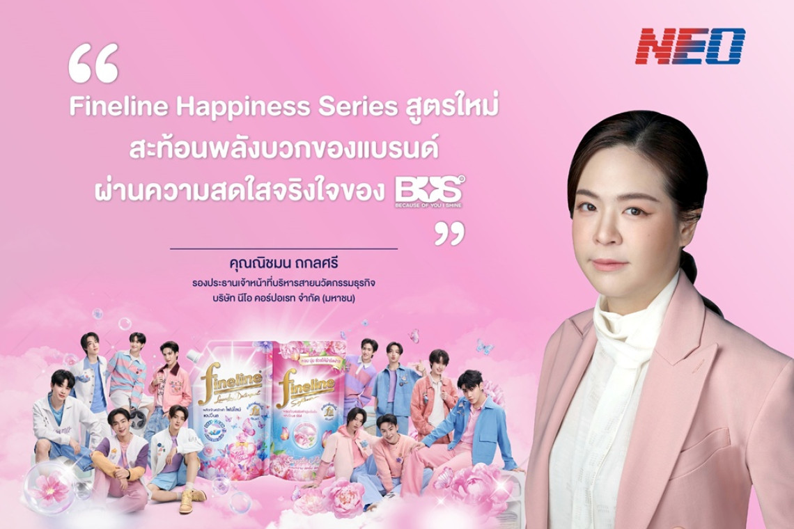 บริษัท นีโอ คอร์ปอเรท จำกัด (มหาชน) หรือ NEO ผู้บุกเบิกนวัตกรรมสินค้าอุปโภค FMCG เปิดตัวแคมเปญใหญ่แห่งปี “Fineline Shine The Happiness” ดึงบอยแบนด์ “BUS” เป็นพรีเซนเตอร์ “ไฟน์ไลน์ แฮปปี้เนส ซีรี่ส์” (Fineline Happiness Series) ผลิตภัณฑ์ซักผ้าสูตรถนอมผ้าและปรับผ้านุ่มสูตรเข้มข้น ชูจุดแข็ง ซักสะอาดพร้อมถนอม นุ่มหอมสดชื่นติดทน 35 วัน ด้วยเทคโนโลยี Fresh Capsule Technology และ FX Tech ลดกลิ่นอับ เข้าถึง Young Gen และ Young at Heart ผู้มีหัวใจสดใสอยู่เสมอ และตอบโจทย์ทุกไลฟ์สไตล์ ทั้งในด้านคุณภาพและอารมณ์ความรู้สึก มอบความสุขที่สัมผัสได้ในทุกวัน พร้อมตั้งเป้าเติบโตสำหรับผลิตภัณฑ์ซักผ้าและปรับผ้านุ่มในซีรีส์นี้ 35.7% และ 30% ตามลำดับ ภายในปี 2568