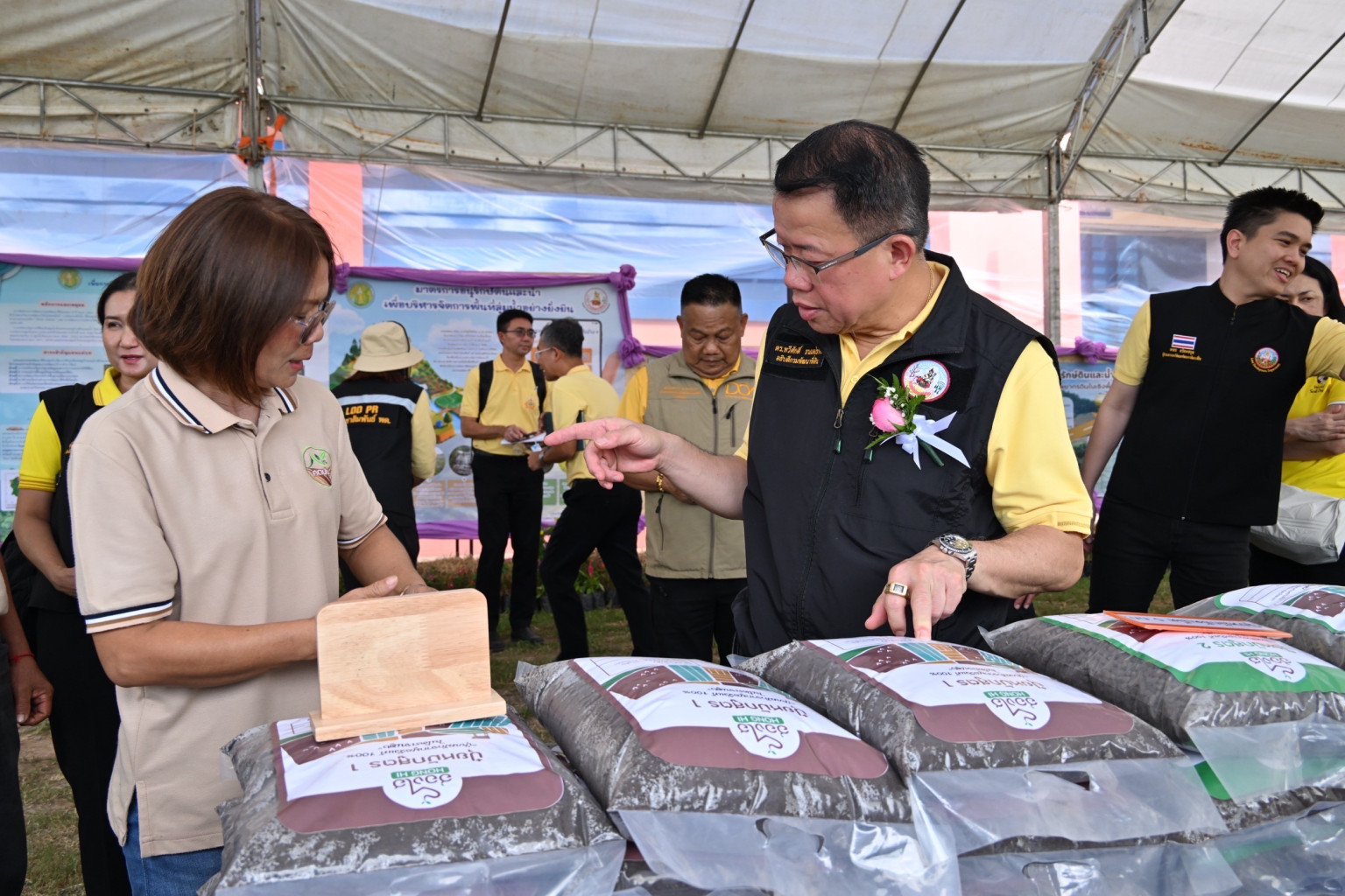 ดร.ทวีศักดิ์ ธนเดโชพล อธิบดีกรมพัฒนาที่ดิน เปิดเผยว่า กรมพัฒนาที่ดินดำเนินงานภารกิจด้านการอนุรักษ์ดินและน้ำอย่างต่อเนื่องตลอดระยะเวลากว่า 62 ปี โดยเริ่มศึกษาวิจัยเรื่องดินครอบคลุมในทุกด้าน อาทิ การสำรวจดินและการทำแผนที่การใช้ประโยชน์ที่ดิน การใช้เทคโนโลยีชีวภาพทางดินที่เป็นประโยชน์เพื่อเพิ่มผลผลิตและลดต้นทุนทางการเกษตร รวมถึงช่วยในเรื่องการรักษาสภาพแวดล้อมในภาคเกษตรที่ยั่งยืน การจัดทำแหล่งน้ำเพื่อการอนุรักษ์ดินและน้ำ โดยดำเนินการทั้งวิธีกลและวิธีพืชควบคู่กันไป รวมทั้งสำรวจและจัดทำฐานข้อมูลทั้งทางด้านทรัพยากรธรรมชาติ สภาพเศรษฐกิจและสังคม แล้วนำมาวิเคราะห์วางแผนการใช้ประโยชน์ที่ดิน เพื่อให้เกิดการใช้ประโยชน์ที่ดินได้อย่างถูกต้องและเหมาะสม อีกทั้งกำหนดมาตรการอนุรักษ์ดินและน้ำไปพร้อมกับการทำเกษตรกรรมและด้านอื่น ๆ ซึ่งเกิดการพัฒนาเป็นพื้นที่ดำเนินการของหมู่บ้าน เกิดเป็นต้นแบบ “หมู่บ้านอนุรักษ์ดินและน้ำ” เป็นตัวอย่างในการถ่ายทอดเทคโนโลยีด้านการพัฒนาที่ดินให้ท้องถิ่นได้ต่อยอดและพัฒนาต่อไป