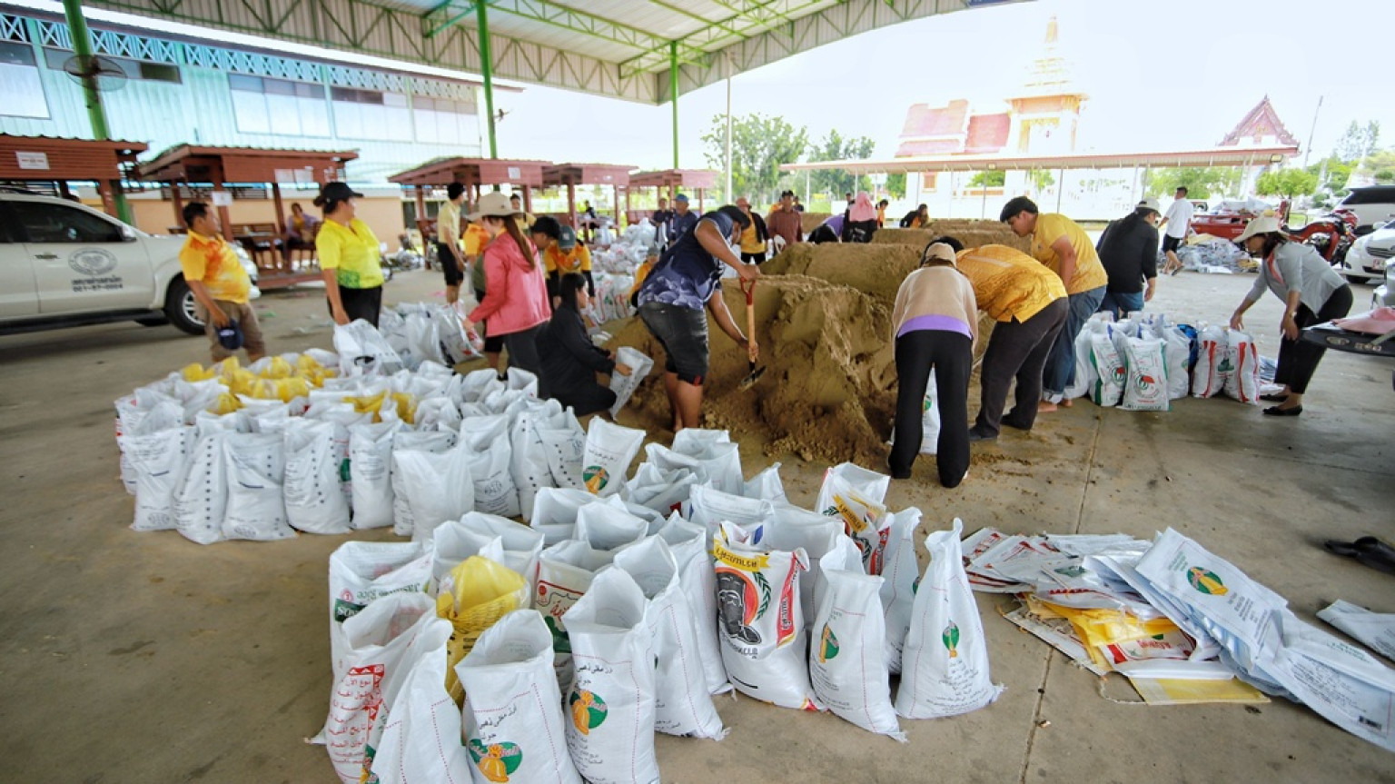เมื่อเวลา 13.00 น. วันที่ 11 ก.ย.68 ผู้สื่อข่าวลงพื้นที่วัดสะแก อำเภอสามโคก จังหวัดปทุมธานี เทศบาลตำบลสามโคก นำโดยนางสาวกรรณิการ์ นาคอินทร์ นายกเทศมนตรีตำบลสามโคก พร้อม นางสาวศริญญกรณ์ พวงเพ็ชร์ ส.อบจ.ปทุมธานี เขต 2 อำเภอสามโคก นายชาญ พวงเพ็ชร์ อดีตนายก อบจ.ปทุมธานี ข้าราชการ ลูกจ้าง เทศบาลตำบลสามโคก ประชาชน เร่งกรอกทรายใส่ถุงเพื่อนำไปทำคันกั้นน้ำ ไม่ให้เอ่อเข้าท่วมโรงเรียนวัดสะแก เนื่องจากระดับน้ำในแม่น้ำเจ้าพระยาได้เอ่อล้นเข้าท่วม วัด โรงเรียน และชุมชน หมู่ที่ 1,2,3 เขตตำบลสามโคก โดยพบว่าระดับน้ำท่วมสูงกว่า 40-50 เซนติเมตร ทำให้ประชาชนในชุมชนหมู่ที่ 2 หลายร้อยครัวเรือนได้รับผลกระทบในชีวิตประจำวัน บ้านหลายหลังถูกน้ำทะลักเข้าท่วมในบ้านโดยทางเทศบาลตำบลสามโคกได้เร่งทำสะพานไม้ช่วยเหลือประชาชนที่ได้รับผลกระทบให้ได้สัญจรไปมาหลังจากที่ระดับน้ำในแม่น้ำเจ้าพระยาเอ่อเข้าท่วมบ้านเรือน ทำให้การเดินทางเข้าออกบ้านลำบาก