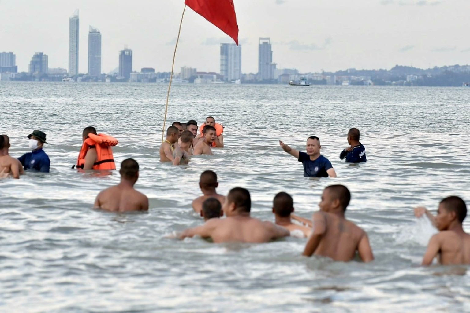 วันที่ 11 ก.ย.68 น.อ.ทิวา อ่อนละออ ผู้บังคับการศูนย์ฝึกทหารใหม่ กรมยุทธศึกษาทหารเรือ (ผบ.ศฝท.ยศ.ทร.) พร้อมด้วยคณะผู้บังคับบัญชา ร่วมกิจกรรมว่ายน้ำในทะเลกับทหารใหม่ ผลัดที่ 2/68 ณ อ่าวบางเสร่ ต.บางเสร่ อ.สัตหีบ จ.ชลบุรี