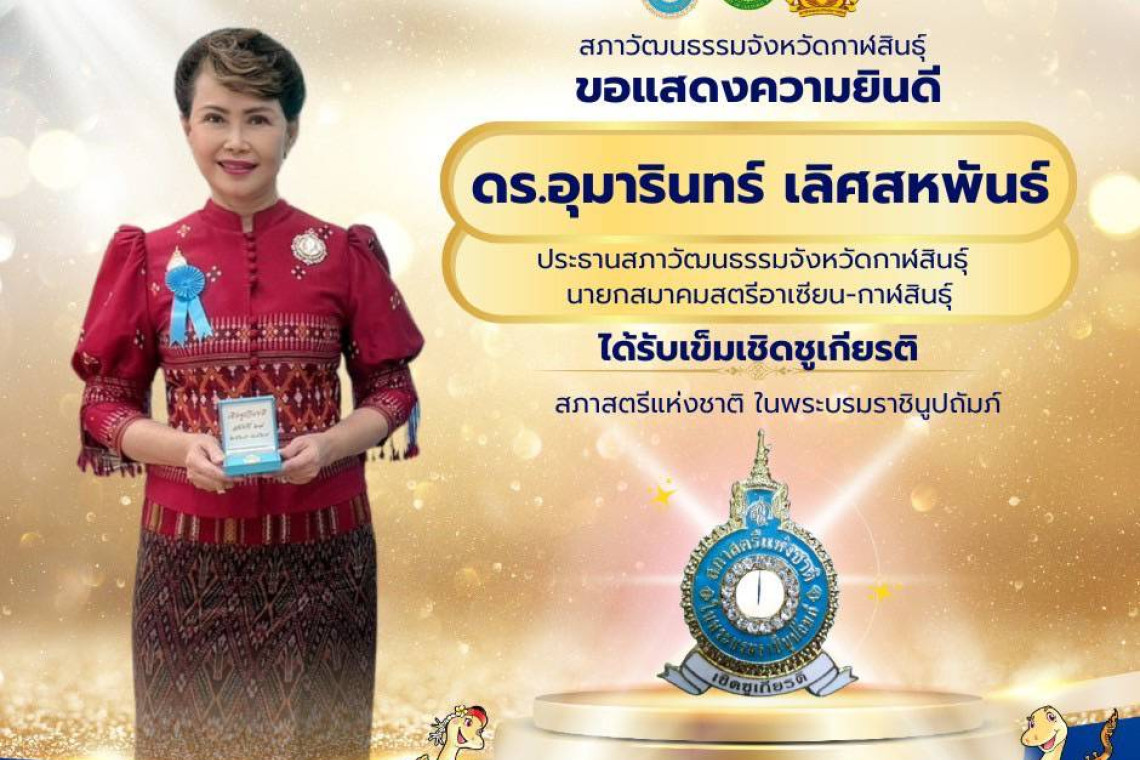 วันที่ 12 กันยายน 2568 ผู้สื่อข่าวรายงานว่า ตามที่เพจสภาวัฒนธรรม จ.กาฬสินธุ์ ได้โพสต์ภาพพร้อมข้อความแสดงความยินดี ในโอกาส ดร.อุมารินทร์ เลิศสหพันธ์ ประธานสภาวัฒนธรรม จ.กาฬสินธุ์ / นายกสมาคมสตรีอาเซียนจังหวัดกาฬสินธุ์ / กรรมการเหล่ากาชาด จ.กาฬสินธุ์ ได้รับเข็มเชิดชูเกียรติสภาสตรีแห่งชาติ ในพระบรมราชินูปถัมภ์ พบว่ามีผู้เข้าไปกดไลค์กดแชร์และคอมเมนท์ แสดงความชื่นชมอย่างต่อเนื่อง ถือเป็นอีกหนึ่งรางวัลแห่งความภาคภูมิใจให้กับ “ดร.อุมารินทร์” และสังคมสตรีเมืองกาฬสินธุ์ ในภายหลังได้รับการเลือกตั้งเป็นประธานสภาวัฒนธรรม จ.กาฬสินธุ์เมื่อวันที่ 4 ก.ค.68 เป็นต้นมา