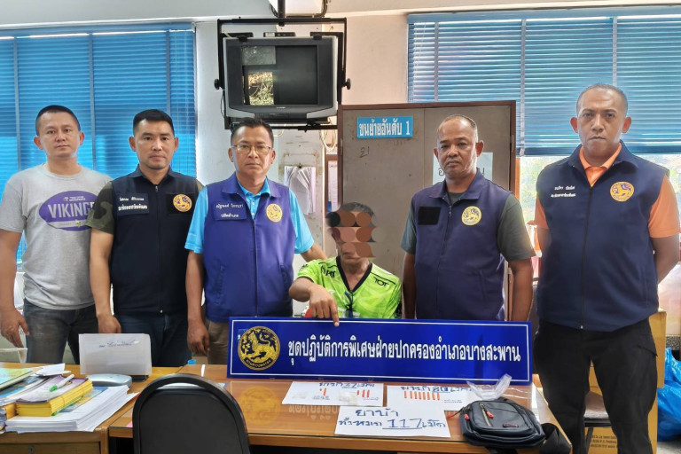 เมื่อวันที่11 ก.ย.2568 เวลา 17:00 น ผู้สื่อข่าวรายงานว่า ภายใต้ยุทธการ “เมืองสามอ่าว ล้างบางยาเสพติดและสิ่งชั่วร้าย (No Drugs No Dealers)” โดยการอำนวยการของ นายสิทธิชัย สวัสดิ์แสน ผู้ว่าราชการจังหวัดประจวบคีรีขันธ์ และสั่งการโดย นายสุทิน ประเสริฐศักดิ์ นายอำเภอบางสะพาน นายณัฐพงศ์ ไกรนรา ปลัดอำเภอหัวหน้าฝ่ายความมั่นคง พร้อมสมาชิก อส.บางสะพานที่ 7 ลงพื้นที่ปฏิบัติการ ลาดตระเวน ปิดล้อม ตรวจค้น พื้นที่เป้าหมายในตำบลพงศ์ประศาสน์ จับกุม นายสมาน หรือ มด อายุ 50 ปี พร้อมของกลางยาบ้า 117 เม็ด โทรศัพท์มือถือ โดยแจ้งข้อหาครอบครองยาเสพติดเพื่อจำหน่ายยาเสพติดประเภท 1 (เมตแอมเฟตามีน)จากนั้น เจ้าหน้าที่ควบคุมตัวผู้เสพยาเสพติดอีก 4 ราย ส่งเข้ารับการบำบัดที่รพ.สต.หนองตาจ่า ต.กำเนิดนพคุณต่อไป