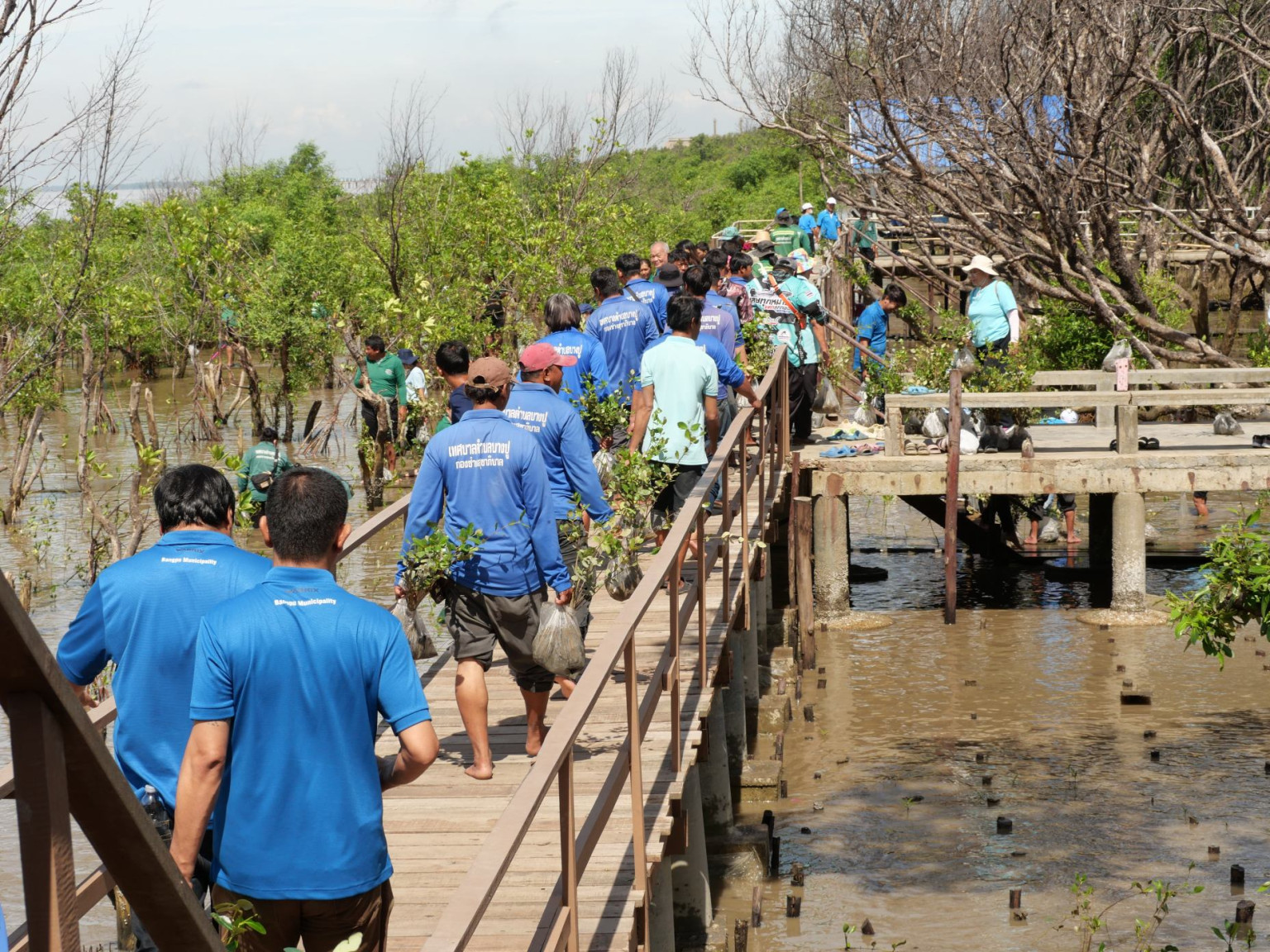 นอกจากนี้ยังมีการบรรยายการให้ความรู้ ความเข้าใจเรื่อง สภาพป่าชายเลน ระบบนิเวศทางทะเล และสาธิตวิธีการปลูกป่าชายเลน โดยจ่าสิบเอกหัสชัย ไกรยะวุธ เจ้าหน้าที่ศูนย์ศึกษาธรรมชาติกองทัพบก จากนั้น นายธีรพล ชุนเจริญ นายกเทศมนตรีตำบลบางปูและผู้เข้าร่วมโครงการฯ ได้ร่วมกันปลูกต้นแสมและต้นลำพู จำนวน 4,000 ต้น และเก็บขยะในบริเวณพื้นที่ปลูกป่าชายเลน เพื่อร่วมรักษาสิ่งแวดล้อมทางทะเลให้มีความอุดมสมบูรณ์มากขึ้น