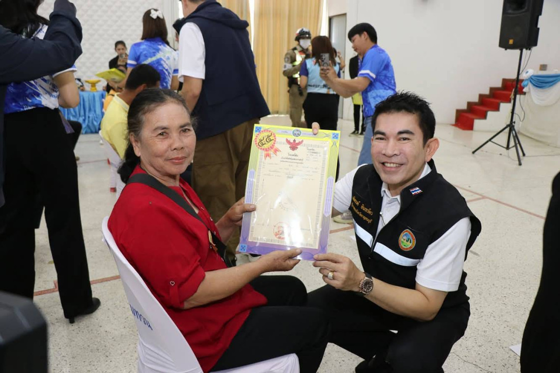 วันที่ 12 ก.ย.2568 เวลา 10.00 น. ณ หอประชุมอำเภอพนมทวน อำเภอพนมทวน จังหวัดกาญจนบุรี นายอธิสรรค์ อินทร์ตรา ผู้ว่าราชการจังหวัดกาญจนบุรี เป็นประธานพิธีมอบโฉนดที่ดิน ตามโครงการ “มอบโฉนดที่ดินทั่วไทย นำสุข คลายทุกข์ให้ประชาชน” โดยมี นายวิภาส โอวาทจรูญจิตต์ เจ้าพนักงานที่ดินจังหวัดกาญจนบุรี กล่าวรายงานวัตถุประสงค์ของการจัดโครงการ ฯ และนายสุเทพ วงศ์วัชรมงคล นายอำเภอพนมทวน ให้การต้อนรับฯ พร้อมด้วย นายยศวัฒน์ มาไพศาลสิน สมาชิกสภาผู้แทนราษฎรเขต 3 กาญจนบุรี หัวหน้าส่วนราชการ ข้าราชการ เจ้าหน้าที่ ผู้นำท้องที่-ผู้นำท้องถิ่น และประชาชนในพื้นที่ตำบลหนองโรง ร่วมรับมอบโฉนดที่ดิน ฯ