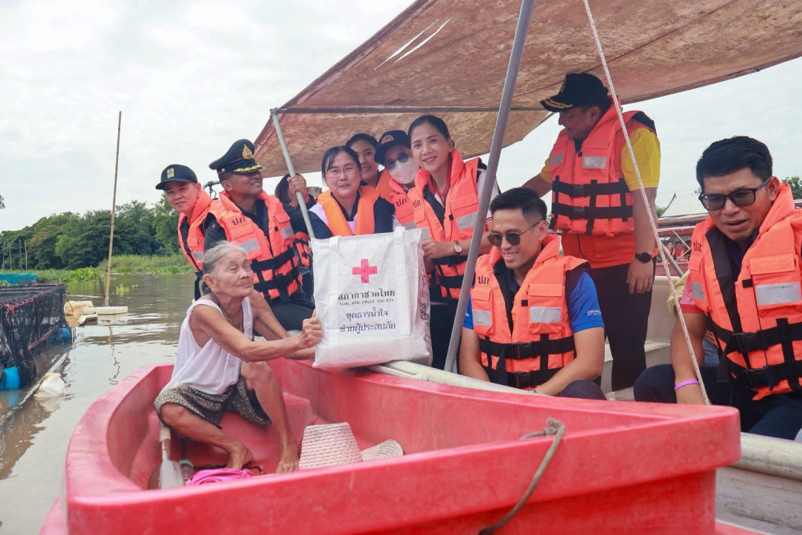 วันที่ 12 .ย.2568 เวลา 10.30 น. ณ ศูนย์สภากาชาดไทยเวชพาหน์เฉลิมพระเกียรติ อ.วิเศษชัยชาญ ต.อ่างทอง นายชวนินทร์ วงศ์สถิตจิรกาล ผู้ว่าราชการจังหวัดอ่างทอง, นายภราดร ปริศนานันทกุล, นายกรวีร์ ปริศนานันทกุล สมาชิกสภาผู้แทนราษฎรจังหวัดอ่างทอง, พร้อมด้วยนางศุทธิกานต์ วงศ์สถิตจิรกาล ประธานแม่บ้านมหาดไทย/นายกเหล่ากาชาดจังหวัดอ่างทอง รองผู้ว่าราชการจังหวัดอ่างทอง, รองนายกเหล่ากาชาดจังหวัดอ่างทอง, หัวหน้าส่วนราชการ, นายอำเภอวิเศษชัยชาญ, เจ้าหน้าที่จากสภากาชาดไทย, สมาชิกเหล่ากาชาดจังหวัดอ่างทอง, ผู้บริหารองค์กรปกครองส่วนท้องถิ่น ผู้นำชุมชน กำนันผู้ใหญ่บ้าน และเจ้าหน้าที่ที่เกี่ยวข้อง ลงพื้นที่มอบเครื่องอุปโภคบริโภคชุดธารน้ำใจ สภากาชาดไทย ให้แก่ผู้ประสบอุทกภัยในพื้นที่อำเภอวิเศษชัยชาญ จำนวน 278 ชุด จากนั้น ผู้ว่าราชการจังหวัดอ่างทองและคณะ ได้ลงเรือเพื่อมอบถุงยังชีพให้กับประชาชนที่พักอาศัยอยู่ริมแม่น้ำน้อยที่ได้รับผลกระทบจากปริมาณน้ำที่เพิ่มสูงขึ้น พร้อมพูดคุยให้กำลังใจประชาชน ซึ่งส่วนใหญ่ยังมีขวัญกำลังใจที่ดีเยี่ยม