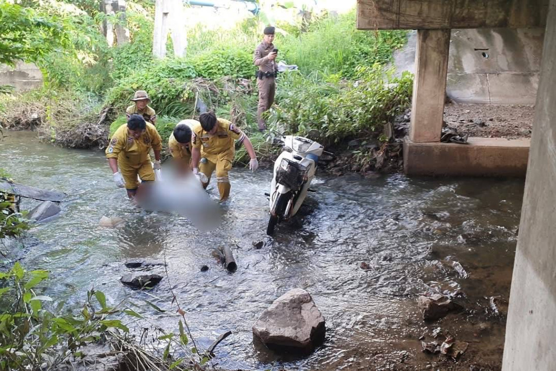 วันที่ 12 ก.ย.2568 ร.ต.ต.กฤติกร ภิญโญธนาชัย รอง สว.(สอบสวน) สภ.เสม็ด ได้รับแจ้งมีรถจักรยานยนต์ตกไปในคลองริมถนนสุขุมวิท ช่วงใต้สะพานข้ามคลองห้วยกะปิ หมู่ 2 ต.ห้วยกะปิ อ.เมือง จ.ชลบุรี จึงรุดไปตรวจสอบพร้อมแพทย์เวร โรงพยาบาลชลบุรี และกู้ภัยไตรคุณธรรม พบศพนายตั้ม ช่อดารา อายุ 37 ปี อยู่หมู่ 6 ต.บางพระ อ.ศรีราชา จ.ชลบุรี พนักงานครัวโรงพยาบาลสมเด็จพระบรมราชเทวี ณ.ศรีราชา เสียชีวิตสภาพช่วงศรีษะและตัวช่วงท่อนบน โดนรถจักรยานยนต์ ยี่ห้อฮอนด้าเวฟ สีน้ำเงิน ขาว ทะเบียน 4 กพ 7473 ชลบุรี ทับจมน้ำ