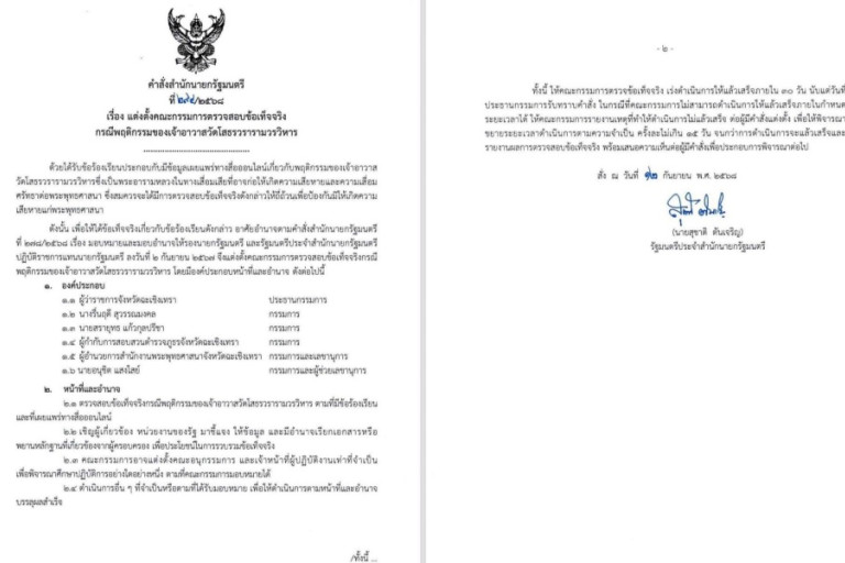 สำหรับกรอบระยะเวลาในการตรวจสอบ เบื้องต้นคาดว่าจะไม่เกิน 1 สัปดาห์ เนื่องจากเป็นเรื่องสำคัญและอยู่ในพื้นที่ของตนโดยตรง ทั้งนี้ นายสุชาติยังยอมรับว่า เรื่องร้องเรียนมีมานานแล้ว และเคยเข้าไปสอบถาม–ตักเตือนเจ้าอาวาสมาก่อน แต่เมื่อมีเสียงสะท้อนจากสังคมออนไลน์อย่างชัดเจน จึงจำเป็นต้องดำเนินการตรวจสอบอย่างเป็นทางการ