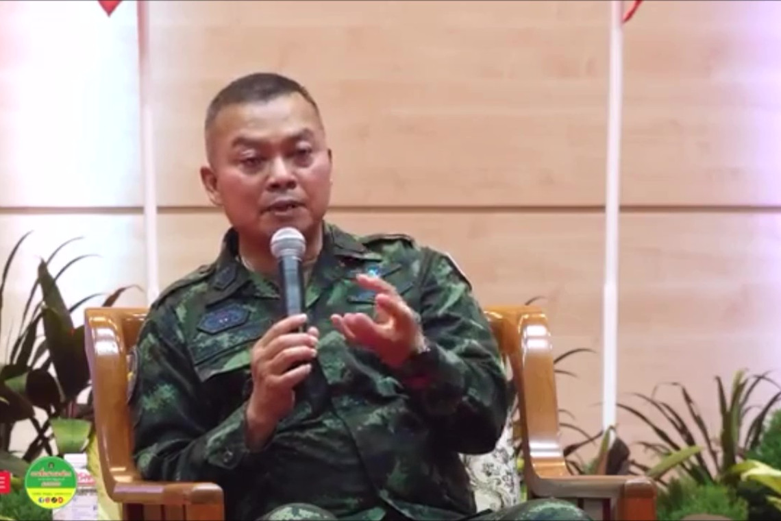 พลโทบุญสิน พาดกลาง แม่ทัพภาคที่ 2 อยู่บนเวทีเป็นวิทยากร บรรยาย ไฮไลน์ของงานคือการตอบคำถามจากเยาวชนที่มาร่วมกิจกรรม โดยคำถามที่เยาวชนฝากถามและถามเองมีหลากหลาย อาทิ คำถามที่ 1 จากสถานการณ์ที่ผ่านมา มีหลายคนสงสัยว่าทำไมต้องมีกองทัพและทหาร แม่ทัพมีข้อคิดอย่างไรเกี่ยวกับบทบาทของทหารในปัจจุบัน? แม่ทัพบอกว่า สถานการณ์สู้รับกับกัมพูชา นี่แหละคือคำตอบมีทหารไว้ทำไม ภูมะเขือเขมรมาตั้งอยู่ในพื้นที่ไทยมานาน ไปทำบ้านอยู่ภูมะเขือ มีเสาสัญญาณ มีเสาไฟฟ้า เลี้ยงเป็ดเลี้ยงไก่ รถปิคอัพก็มี ขาไขว่ห้างสูบบุหรี่กินกาแฟอยู่แผ่นดินไทย เวลาจะไปไล่เขาจะเอาใครไปไล่ ก็ทหารนี่ไง นี่หละเหตุผลมีไว้ทำไม เวลาเราถูกรังแกนี่ไง ทหารของกองทัพภาค 2 เลือดตาแทบกระเด็น ไม่ได้ตำหนิใครนะครับ การลดกำลังทหารควรพิจารณาวิเคราะห์ภัยคุกคามให้ดี แล้วถ้าถึงจุดที่เราต้องใช้กำลังเพื่อปกป้องอธิปไตยของเราจะเอากำลังมาจากไหน ทหารเราทำจริงเพื่อผลประโยชน์ของบ้านเมือง ทหารเราทำจริง ทหารเราสละชีพเพื่อชาติถึง 15 คนบาดเจ็บเป็นร้อย เราทำเพื่ออะไร เราต้องการรักษาแผ่นดินให้ลูกหลาน ทุกครั้งที่แม่ทัพแต่งเครื่องแบบ จะมองหาธงชาติอันดับแรกเอามาติดไม่ต้องอาย ร้องดังๆ เพลงชาติ ธงชาติไทย ชาติ ศาสนา พระมหากษัตริย์ สามสีของธงชาติ บรรพบุรุษเราเหนื่อย พระมหากษัตริย์เราต่อสู้มาในอดีตเหนื่อย ตอนนี้เหลือแผ่นดินไว้เท่านี้ไว้ให้พวกเรา ทั้ง 3 สีของธงชาติต้องอยู่คู่ประเทศไทย นี่คือความมั่นคงของพวกเรา คนไทยทั้งชาติ คำถามที่ 2: จากข่าวที่ปรากฏตามสื่อต่าง ๆ เกี่ยวกับสถานการณ์ชายแดน แม่ทัพมีแนวคิดอย่างไรต่อความมั่นคงชายแดนในอนาคต? แม่ทัพกุ้ง บอกว่า ปัญหาแนวชายแดนที่เกิดการปะทะของไทยเราและเขมรที่ผ่านมา ตอนนี้หยุดยิงชั่วคราว แต่พร้อมจะเกิดบวกหรือลบได้ ตอนนี้ทหารเราพร้อมบวกหรือไม่บวกก็ได้ หากต้องการสันติภาพ สันติภาพจะเกิดขึ้นได้หรืออย่างไร ขึ้นอยู่กับผู้นำเขมรเท่านั้น