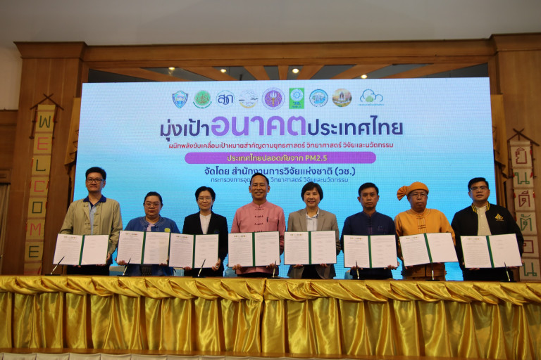 เมื่อวันที่ 12 กันยายน 2568 เวลา 14.30 น. สำนักงานการวิจัยแห่งชาติ (วช.) กระทรวงการอุดมศึกษา วิทยาศาสตร์ วิจัยและนวัตกรรม จัดพิธีลงนามบันทึกข้อตกลงความร่วมมือ พร้อมกิจกรรม “มุ่งเป้าอนาคตประเทศไทยเพื่ออากาศสะอาด” ณ โรงแรมอิมพีเรียล รีสอร์ท จังหวัดแม่ฮ่องสอน เพื่อขับเคลื่อนการแก้ปัญหาฝุ่น PM2.5 ตามยุทธศาสตร์ ววน.