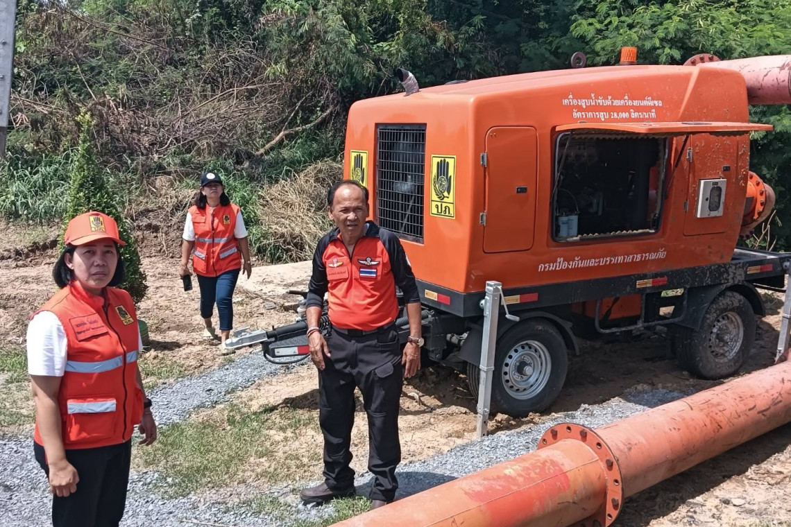 สูบส่งน้ำเพื่อผลักดันน้ำที่ท่วมขังจากน้ำป่าไหลหลากและแม่น้ำยมหนุนสูงที่บริเวณชุมชนคูหาสุวรรณ เทศบาลเมืองสุโขทัยธานี ไปยังท่อน้ำทิ้งชุมชนคูหาสุวรรณ เทศบาลเมืองสุโขทัยธานี ระยะทาง 50 เมตร ปริมาณน้ำที่สูบ 5,000 ลิตร/นาที ปริมาณน้ำสะสม (11-13 ก.ย. 68) 9,000 ลบ.ม.