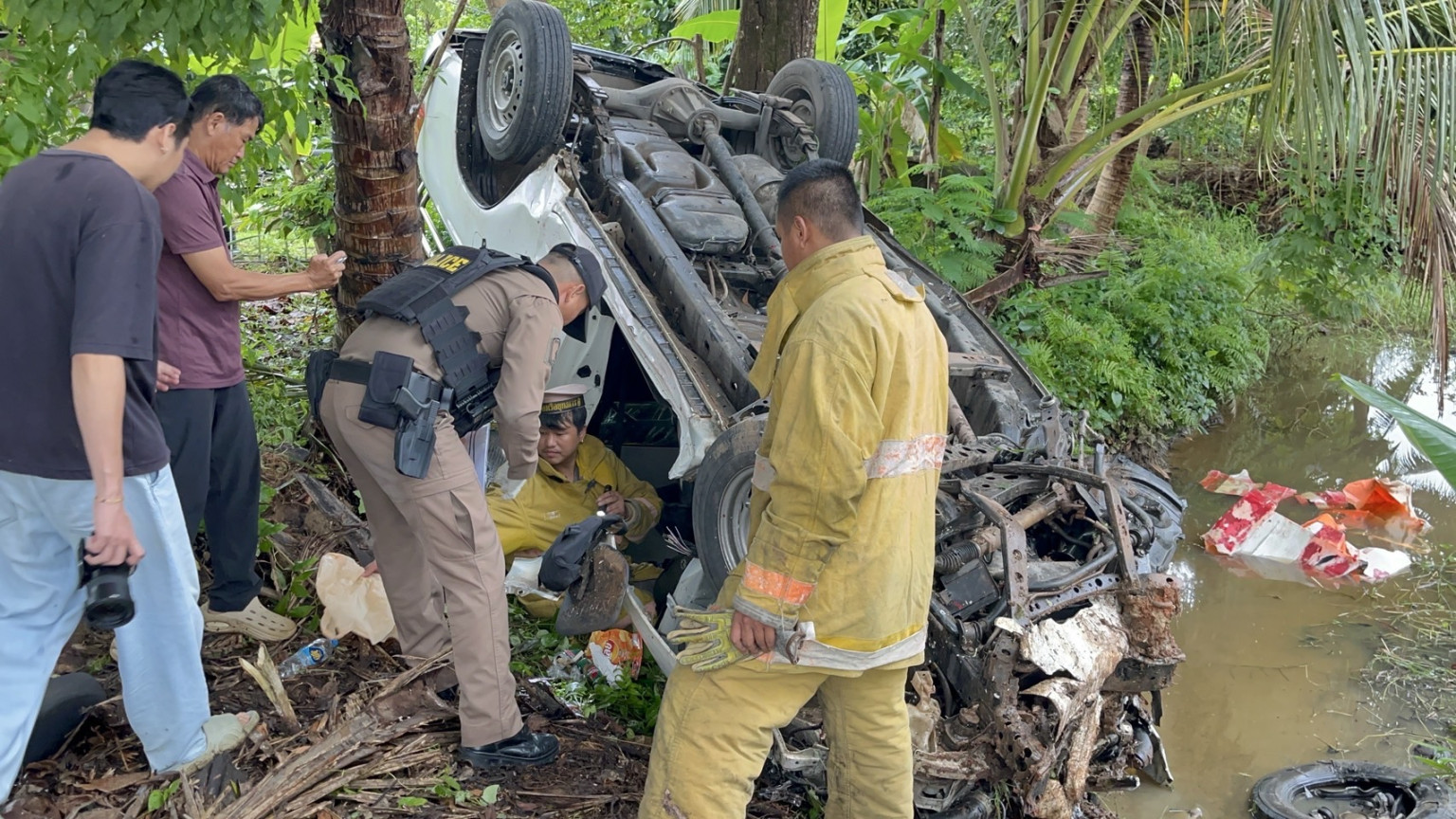 ส่วนรายที่ 4 ชื่อ กัญญารัตน์ ไม่ทราบอายุ ติดอยู่ภายในรถ บาดเจ็บสาหัส เจ้าหน้าที่กู้ภัยต้องใช้เครื่องตัดถ่างเข้าช่วยเหลือออกมาจากรถได้สำเร็จ นอกจากนี้ตำรวจยังพบยาเสพติด ยาไอซ์ 1 ห่อ ไม่ทราบน้ำหนัก เครื่องชั่ง ถุงซิปจำนวนมาก และอุปกรณ์การเสพ