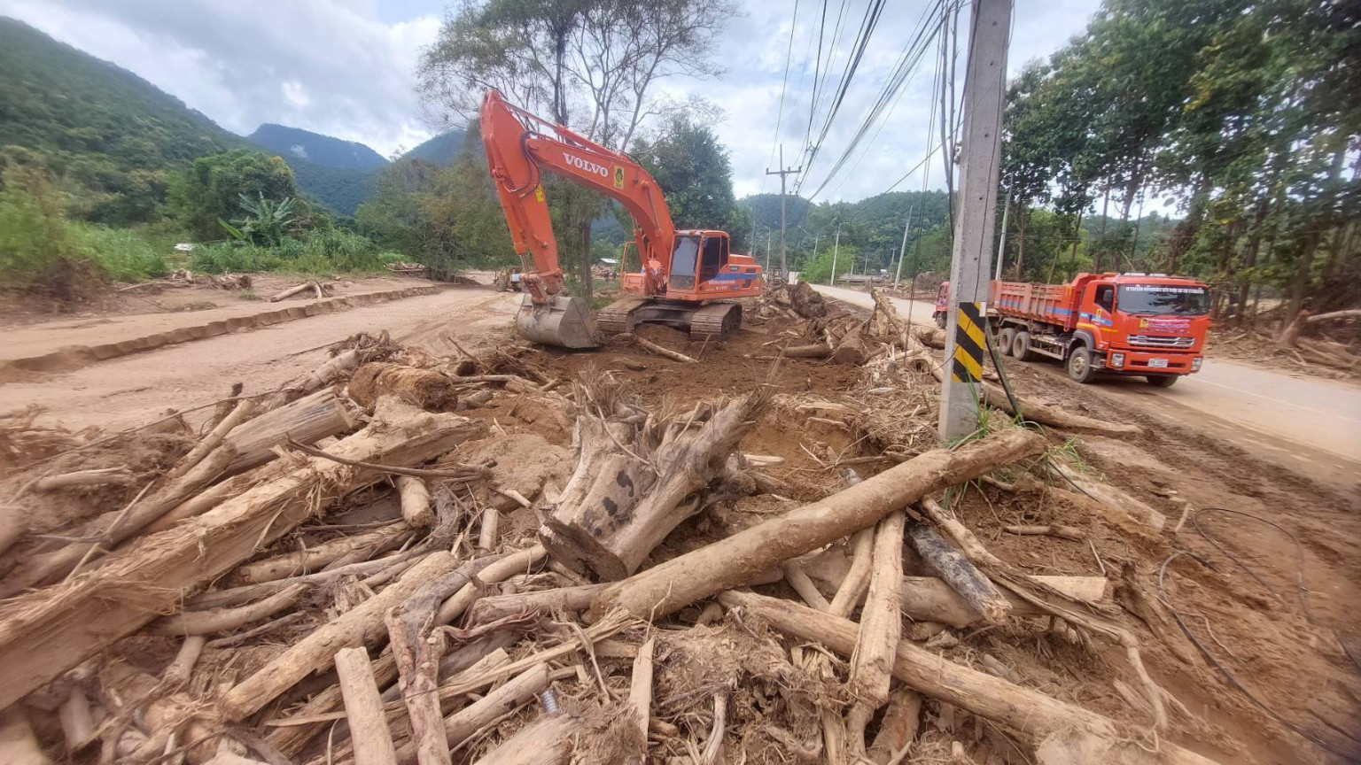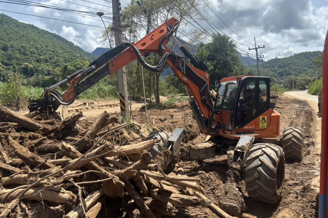 เมื่อวันที่ 14 กันยายน 2568 ศูนย์ ปภ.เขต10 ลำปาง จัดชุดปฎิบัติการช่วยเหลืออุทกภัย ช่วยเหลือฟื้นฟูพื้นที่ กำจัดต้นไม้ เศษไม้ และดินโคลน พื้นที่ หมู่12 บ้านผาบ่อง อ.เมือง จ.แม่ฮ่องสอน จำนวน 2 จุด จุดที่1 นำรถขุดตักล้อยางดำเนินการ บริเวณข้างบ้านผู้ประสบภัย จุดเรียนรู้การพัฒนาที่ดินประจำตำบล นำดินลงพร้อมทำการปรับพื้นที่ ประมาณ 100 ตารางวา จนแล้วเสร็จ จุดที่ 2 ดำเนินการเปิดทางน้ำ นำดินโคลน ซากไม้ออก บริเวณหัวสะพานแม่สะมาด 2 พร้อมขุดลอกคลองน้ำระยะทางยาวประมาณ 1,000 เมตร อยู่ระหว่างเร่งดำเนินการ