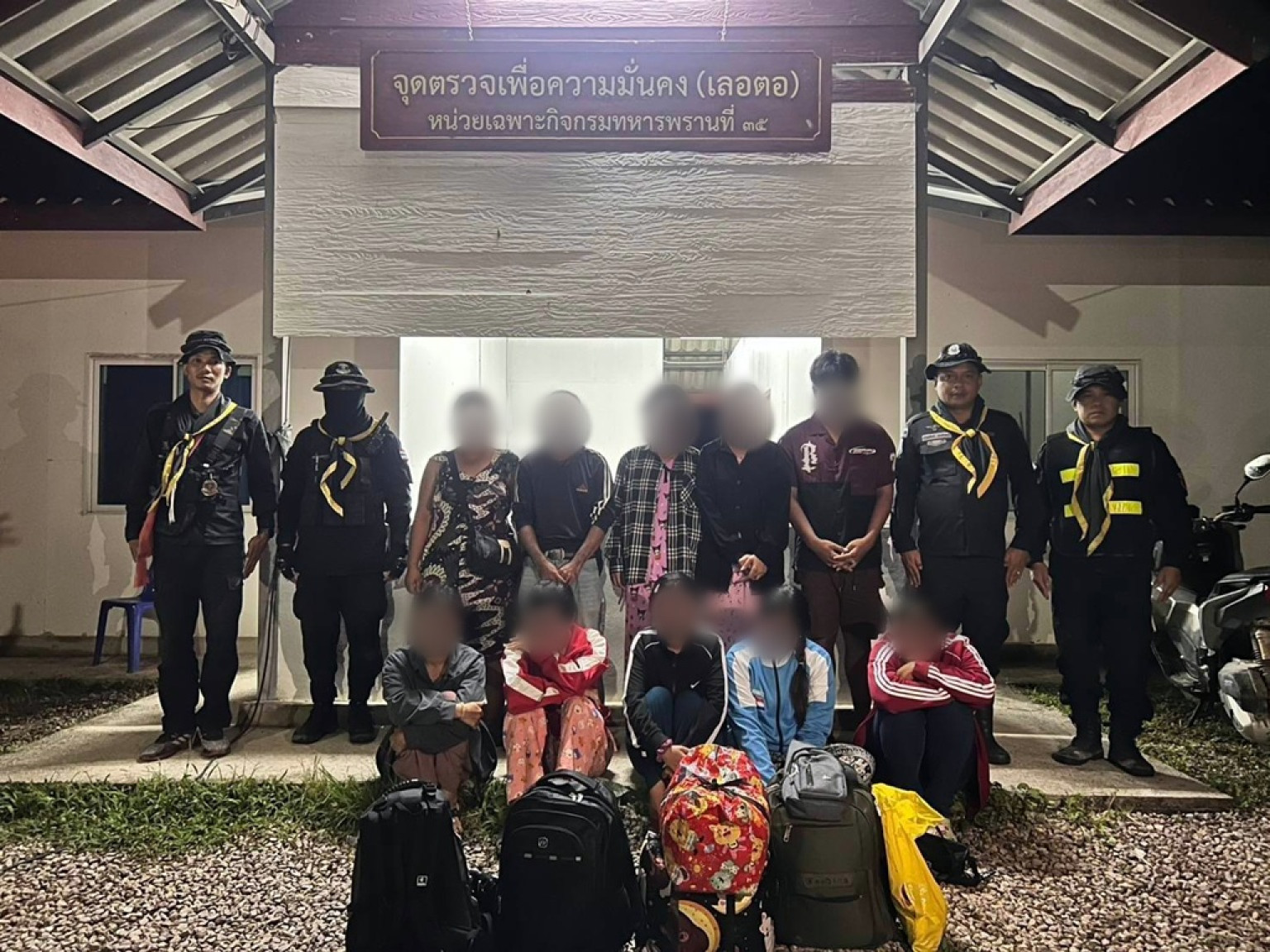 วันที่ 14 ก.ย.68 หน่วยเฉพาะกิจกรมทหารพรานที่ 35 (ฉก.ทพ.35) บูรณาการ ร่วมกับ เจ้าหน้าที่ตำรวจ สภ.แม่ระมาด จ.ตาก ออกปฎิบัติการลาดตระเวนเฝ้าตรวจบริเวณแนวชายแดนไทย-เมียนมา พื้นที่รับผิดชอบ ต.แม่ตื่น อ.แม่ระมาด จ.ตาก ภายหลังจากที่ได้รับรายงานจากแหล่งข่าวว่ามีบุคคลต้องสงสัยหลบซ่อนอยู่ในป่าข้างทางบริเวณท้ายหมู่บ้าน หน่วยจึงได้นำกำลังลงพื้นที่ทันที พบบุคคลต้องสงสัย จำนวน 10 คน สัญชาติเมียนมา (เป็นชาย 2 คน , เป็นหญิง 8 คน)