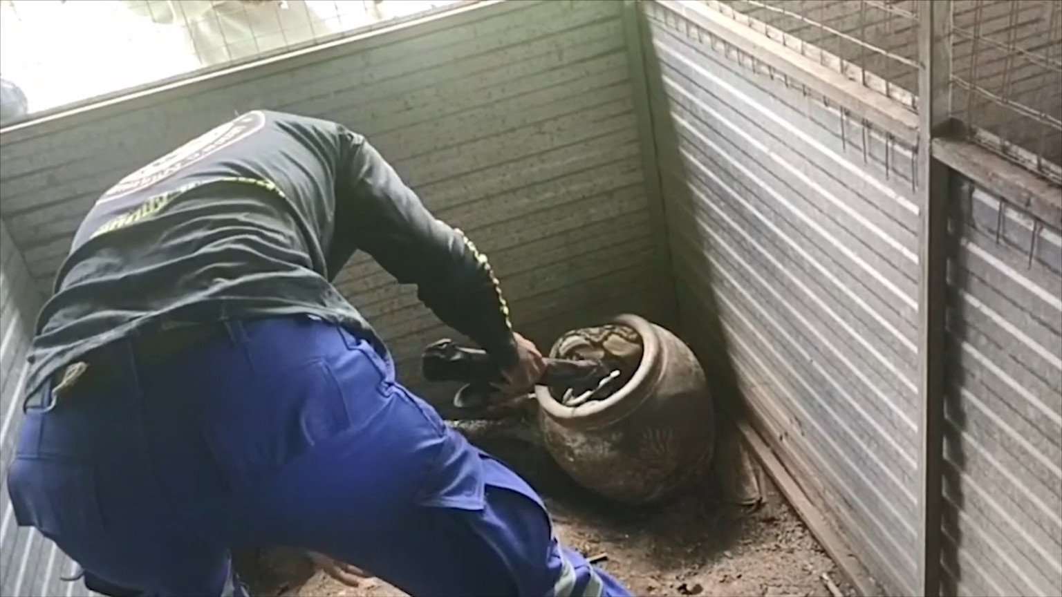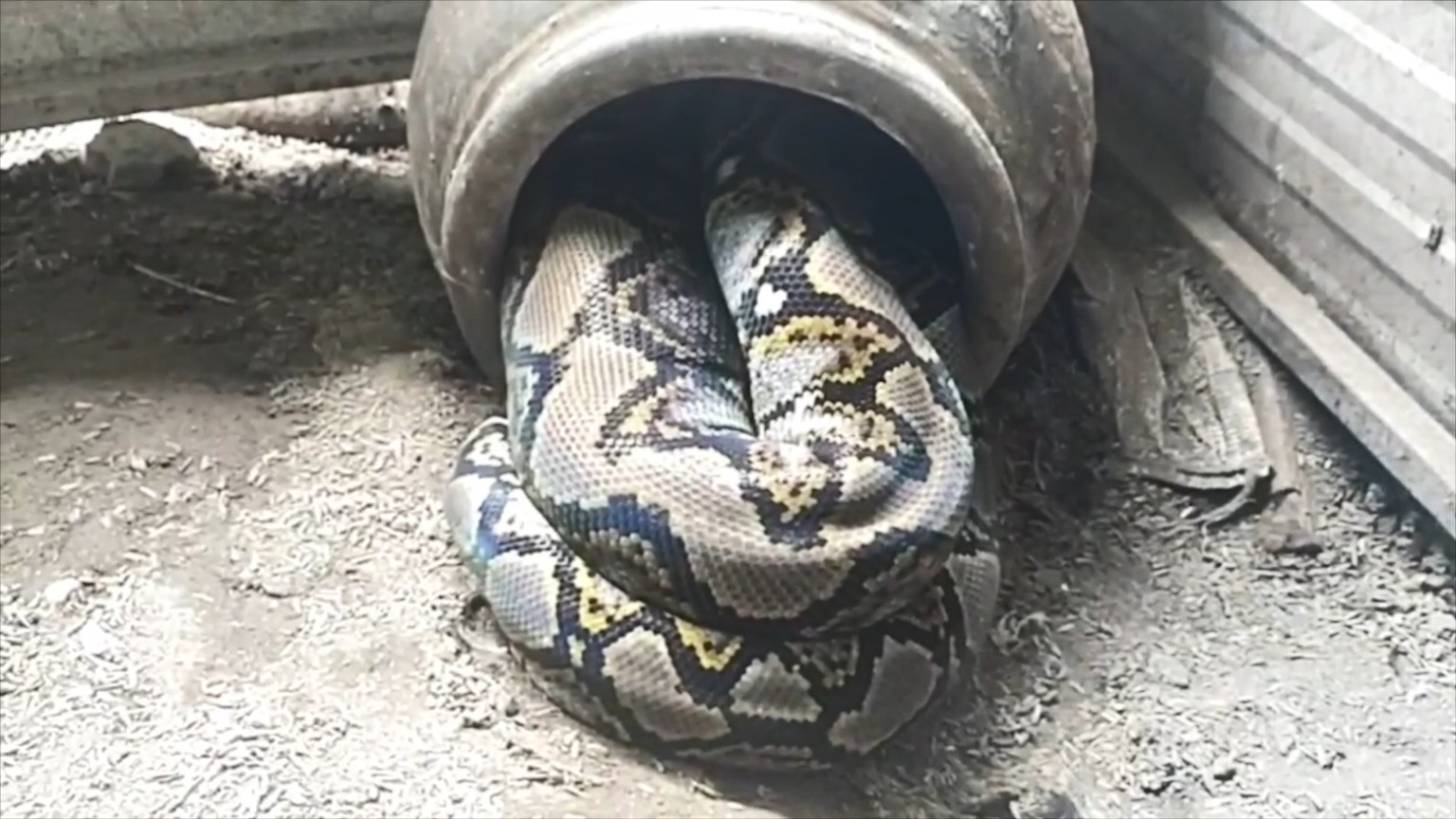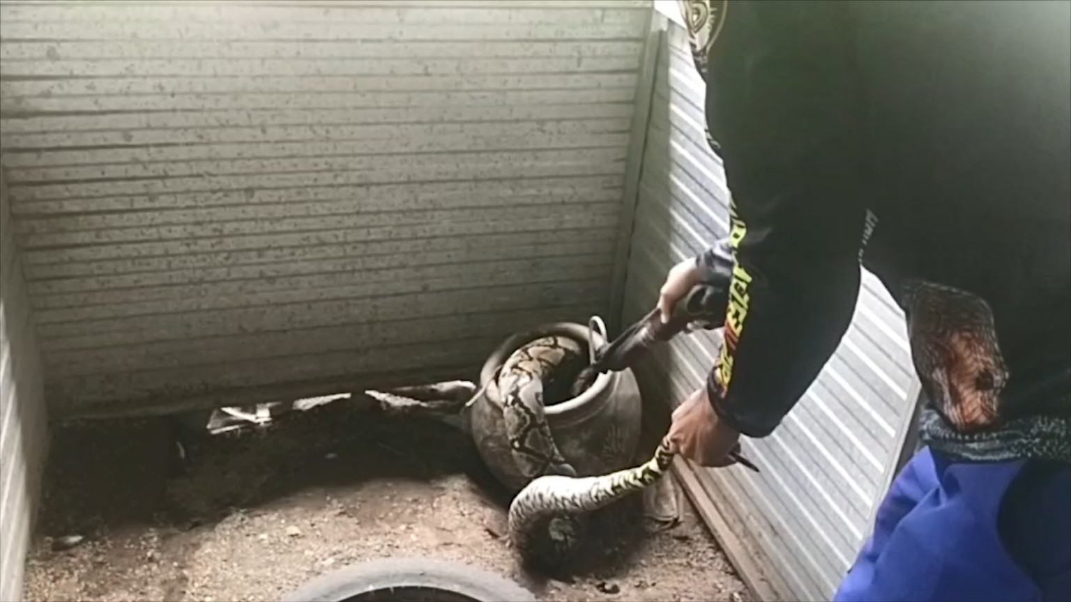 เมื่อไปถึงนายทวีศักดิ์ จึงรีบเข้าตรวจสอบในเล้าไก่ชน ก็พบว่างูเหลือมตัวใหญ่ หลังจากเขมือบไก่ชน และ นกพิราบ จนอิ่มแล้วจึงเลื้อยมาซุกในโอ่งใบเล็กภายในเล้าไก่ชน จึงเข้าทำการใช้อุปกรณ์ในการจับงูเข้าจับงูเหลือม แต่งูเหลือมแสดงความดุร้าย ฉกใส่หลายครั้ง เจ้าหน้าที่ต้องใช้ความระมัดระวังในการจับงูเหลือมอยู่นานประมาณ 2 นาที ก็สามารถจับงูเหลือมออกมาจากโอ่งใบเล็กได้ นำมาวางไว้ที่สนามหญ้า สักพักงูเหลือมก็ได้ขย่อนไก่ชน และนกพิราบ อย่างละ 1 ตัว ออกมา จึงรีบจับงูเหลือมนำใส่กระสอบเตรียมไปปล่อยคืนสู่ป่าธรรมชาติที่อยู่ห่างไกลบ้านเรือนผู้คนต่อไป ทั้งนี้ชาวบ้านที่ทราบข่าวต่างแห่ตีเลขงูเหลือมบุกเขมือบไก่ชน เป็นเลขเด็ดงวดนี้ 3 1 2 9 กันอย่างคึกคัก