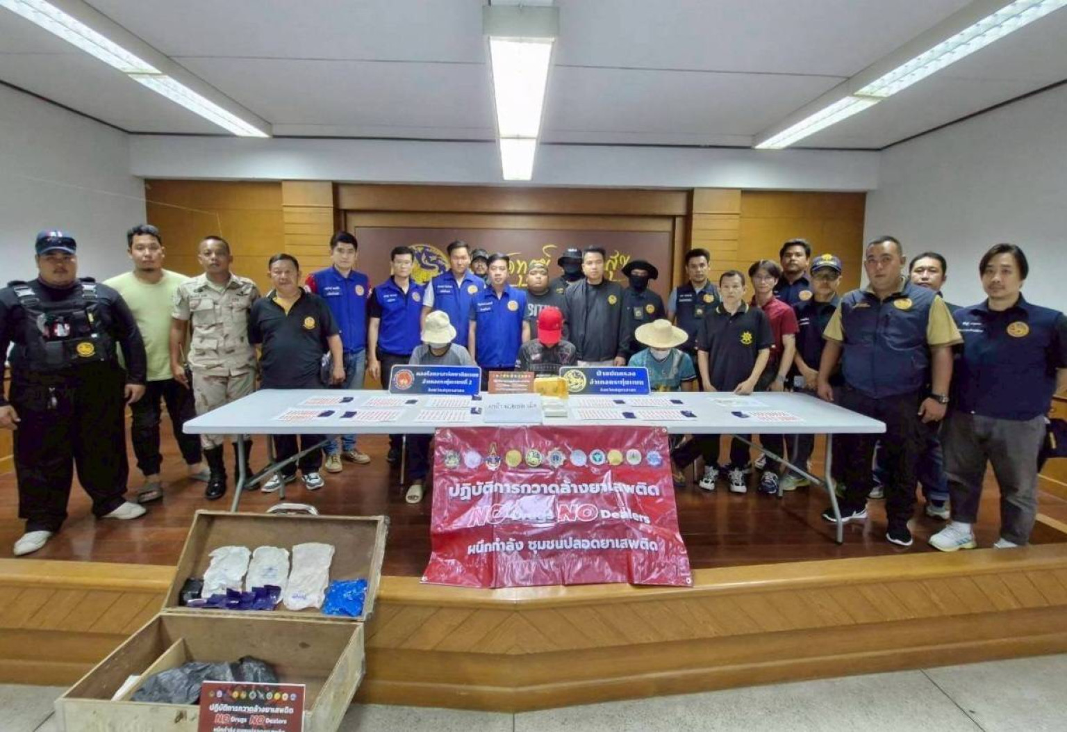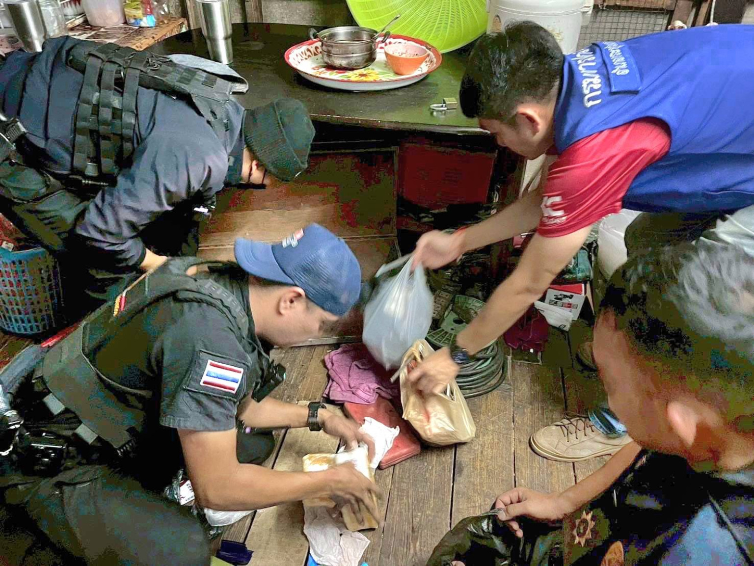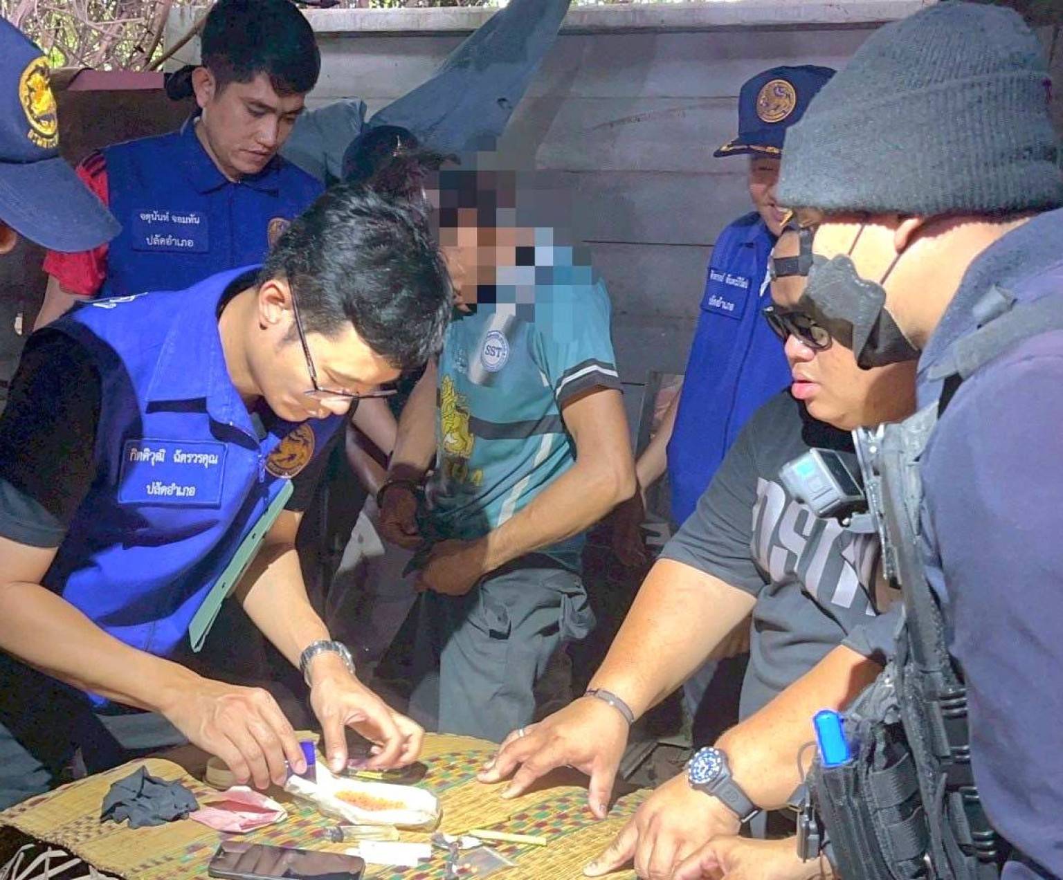 เมื่อไปถึงบริเวณ หน้าซุ้มพญาลอ ชุมชนตำบลอ้อมน้อย มีการเลี้ยงไก่ชน เป็นจำนวนมาก สายลับที่อยู่ภายใน ได้ส่งสัญญาณออกมาว่า พฤติกรรมเป็นไปตามข่าวที่ได้รับแจ้ง ทางเจ้าหน้าที่จึงเปิดแผนปฎิบัติการ"ศรทองดับซุ้มพญาลอ"นำกำลังบุกตรวจค้นตามจุดต่างๆพบยาบ้าจำนวน 8,202เม็ด พร้อมจับกุมผู้ต้องหาได้ 3 คน โดยผู้ต้องหายอมรับสารภาพ ว่ายาบ้าที่พบเป็นของตนเองที่เสพและขายให้กับเซียนพนันไก่ชนที่แวะเวียนกันมาที่บ่อนไก่ชนแห่งนี้ เจ้าหน้าที่จึงได้นำตัวผู้ต้องหาทั้งหมดเพื่อทำบันทึกจับกุมและส่งตัวให้พนักงานสอบสวน สภ.กระทุ่มเเบน เพื่อดำเนินคดีตามกฎหมาย