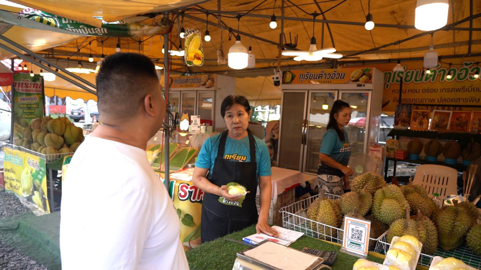 นางสมหมาย ปาณะศรี อายุ 55 ปี เจ้าของร้านทุเรียนต้าวอ้วน กล่าวว่า ลูกค้าส่วนใหญ่ประมาณ 70-80% ใช้การโอนเงิน ทำให้ร้านไม่สามารถปฏิเสธได้ แม้จะเคยลองแจ้งลูกค้าว่ารับเฉพาะเงินสด แต่กลับทำให้พลาดโอกาสในการขายสินค้าไป