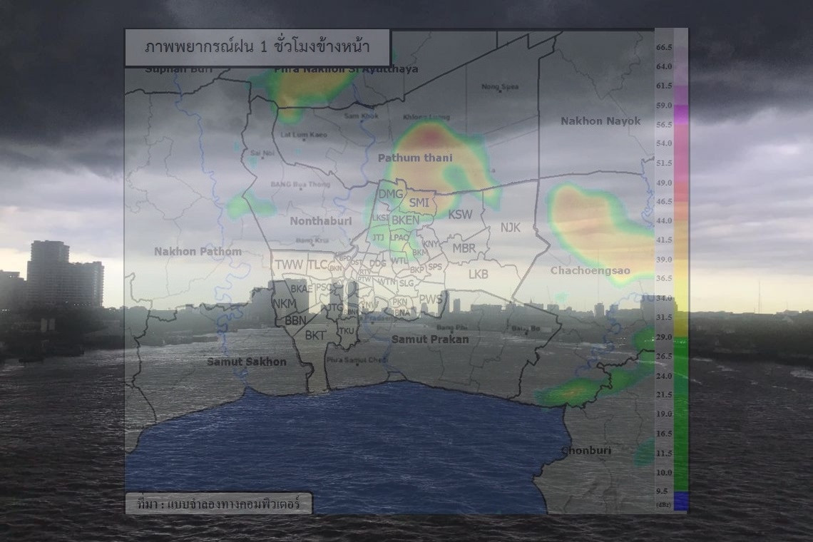 กลุ่มฝนเคลื่อนตัวทางทิศเหนือเข้าปกคลุมบริเวณจังหวัดปทุมธานี ฉะเชิงเทรา กรุงเทพมหานคร เขตสายไหม หนองจอก หลังจากนั้น 15.30–16.00 น. พบกลุ่มฝนบริเวณจังหวัดพระนครศรีอยุธยา ปทุมธานี ฉะเชิงเทรา คาดว่าปกคลุม 1 ชั่วโมง
