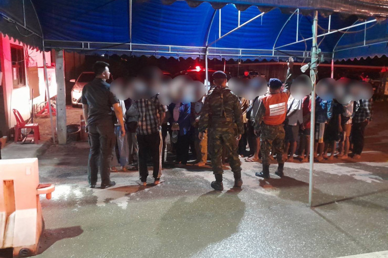 กระทั่งเวลา 01.00 น. ขณะที่เจ้าหน้าที่ชุดจับกุมกำลังลาดตระเวนเฝ้าตรวจ บริเวณ ริมถนนหมายเลข 323 สังเกตพบรถยนต์ จำนวน 3 คัน จอดอยู่บริเวณ วัดอู่ล่อง ต.ท่าขนุน อ.ทองผาภูมิ จ.กาญจนบุรี พร้อมบุคคลต้องสงสัยจำนวนหนึ่ง จึงได้เข้าทำการตรวจสอบ ทันทีที่ผู้ขับขี่รถยนต์สังเกตพบเจ้าหน้าที่ จึงได้วิ่งหลบหนีเข้าไปในป่า หลังจากนั้นเจ้าหน้าที่จึงได้จัดกำลังติดตามผู้กระทำความผิดไป ต่อมาเจ้าหน้าที่ทำการตรวจสอบบริเวณดังกล่าวอย่างละเอียด พบบุคคลต่างด้าวผิดกฎหมาย สัญชาติเมียนมา จำนวน 52 ราย (ชาย 31 ราย และหญิง 21 ราย) ซึ่งทั้งหมดไม่สามารถสื่อสารภาษาไทย และไม่มีเอกสารประจำตัวที่ทางราชการออกให้ เจ้าหน้าที่จึงได้ควบคุมตัวไว้ทั้งหมด