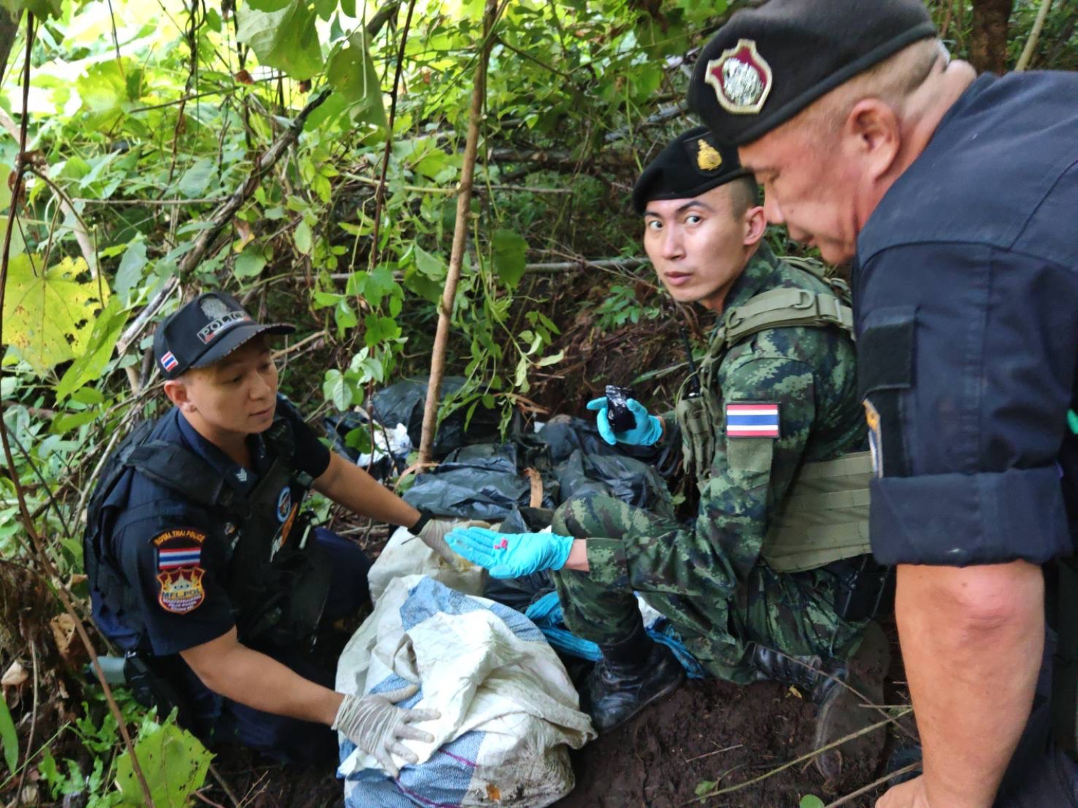 พันเอก อนุวัช ปัญญานันท์ เปิดเผยว่า หลังจากเย็นวันที่ 15 ก.ย.ที่ผ่านมา ร้อย ม.1 ฉก.ทัพเจ้าตาก ได้นำกำลังออกลาดตระเวนเฝ้าตรวจตามแนวชายแดนไทย-เมียนมา ด้าน ต.เทอดไทย อ.แม่ฟ้าหลวง จ.เชียงราย ต่อมาเมื่อตรวจตราไปถึงบริเวณช่องทางปูนะ 2 หมู่บ้านปูนะ หมู่ 4 ต.เทอดไทย อ.แม่ฟ้าหลวง ได้ตรวจพบกลุ่มบุคคลต้องสงสัยมากถึง 15-20 คน พากันแบกกระสอบฟางผ่านป่าเขาเข้ามาในเขตฝั่งไทย เจ้าหน้าที่ทหารจึงได้ให้สัญญาณเพื่อจะเข้าไปตรวจสอบ