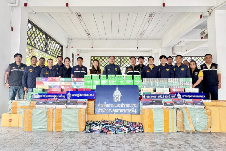 กรมศุลฯภ.4 กวาดล้างต่อเนื่องทุกเดือน จับอายัดบุหรี่ไฟฟ้า-บุหรี่เถื่อน ล็อตใหญ่ มูลค่า 7 ล้านที่ขนส่งเอกชนสงขลา