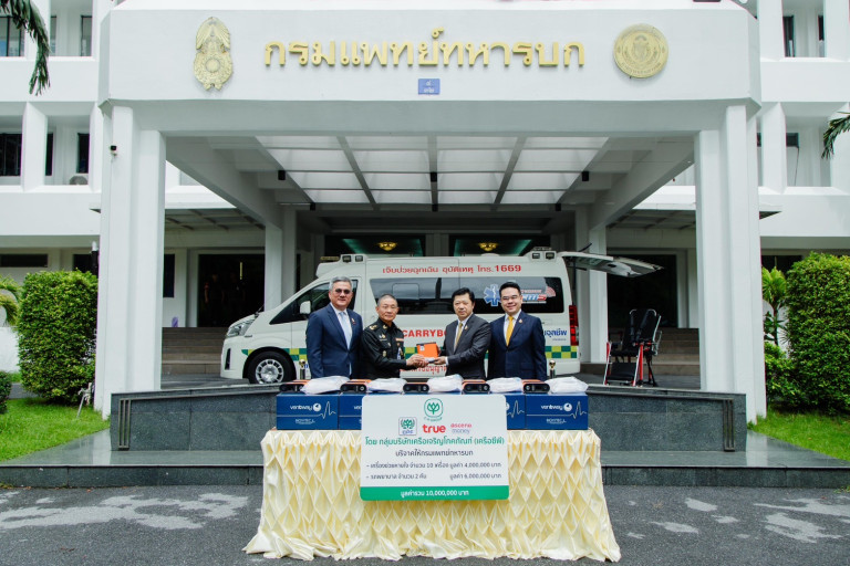 สำหรับการส่งมอบครั้งนี้เป็นส่วนหนึ่งของการร้อยเรียงความดีจากกลุ่มบริษัทในเครือเจริญโภคภัณฑ์ ซึ่งนอกจาก การส่งมอบเครื่องช่วยหายใจจาก ทรูคอร์ปอเรชั่นแล้ว ยังมี ซีพีเอฟ และ แอสเซนด์ มันนี่ ร่วมมอบ รถพยาบาลอัจฉริยะจำนวน 2 คัน รวมมูลค่าการสนับสนุนทั้งหมด 10 ล้านบาท เพื่อเสริมศักยภาพด้านการแพทย์ชายแดนอย่างรอบด้าน ทั้งในภารกิจช่วยชีวิตและการเคลื่อนย้ายผู้ป่วยที่ต้องการการดูแลเร่งด่วน