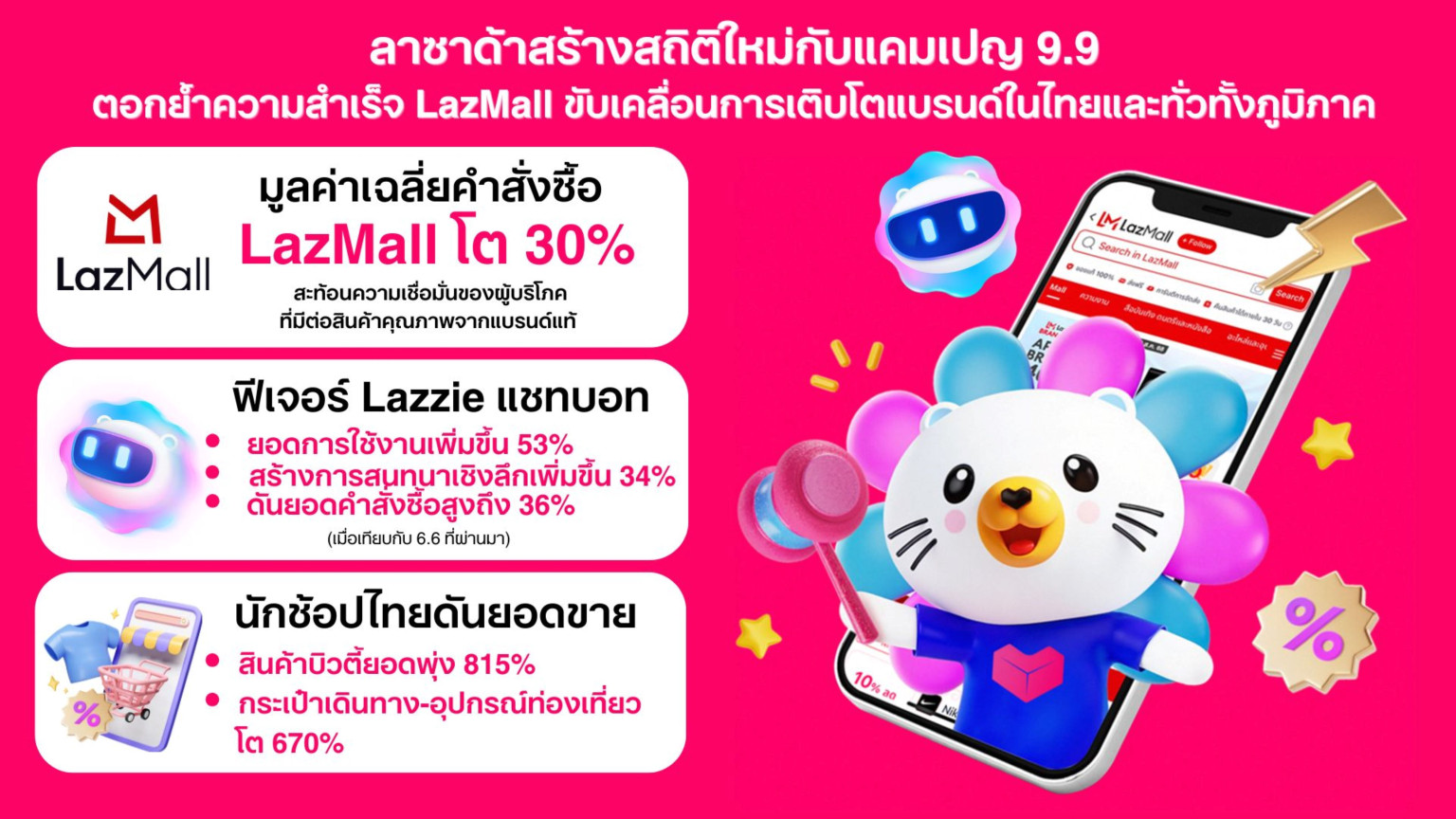 แคมเปญ 9.9 ครั้งนี้ LazMall ศูนย์รวมแบรนด์ชั้นนำจากทั่วโลกกว่า 32,000 แบรนด์ ได้พิสูจน์ให้เห็นถึงศักยภาพในการเชื่อมโยงนักช้อปและแบรนด์ในภูมิภาคเอเชียตะวันออกเฉียงใต้อย่างแข็งแกร่ง