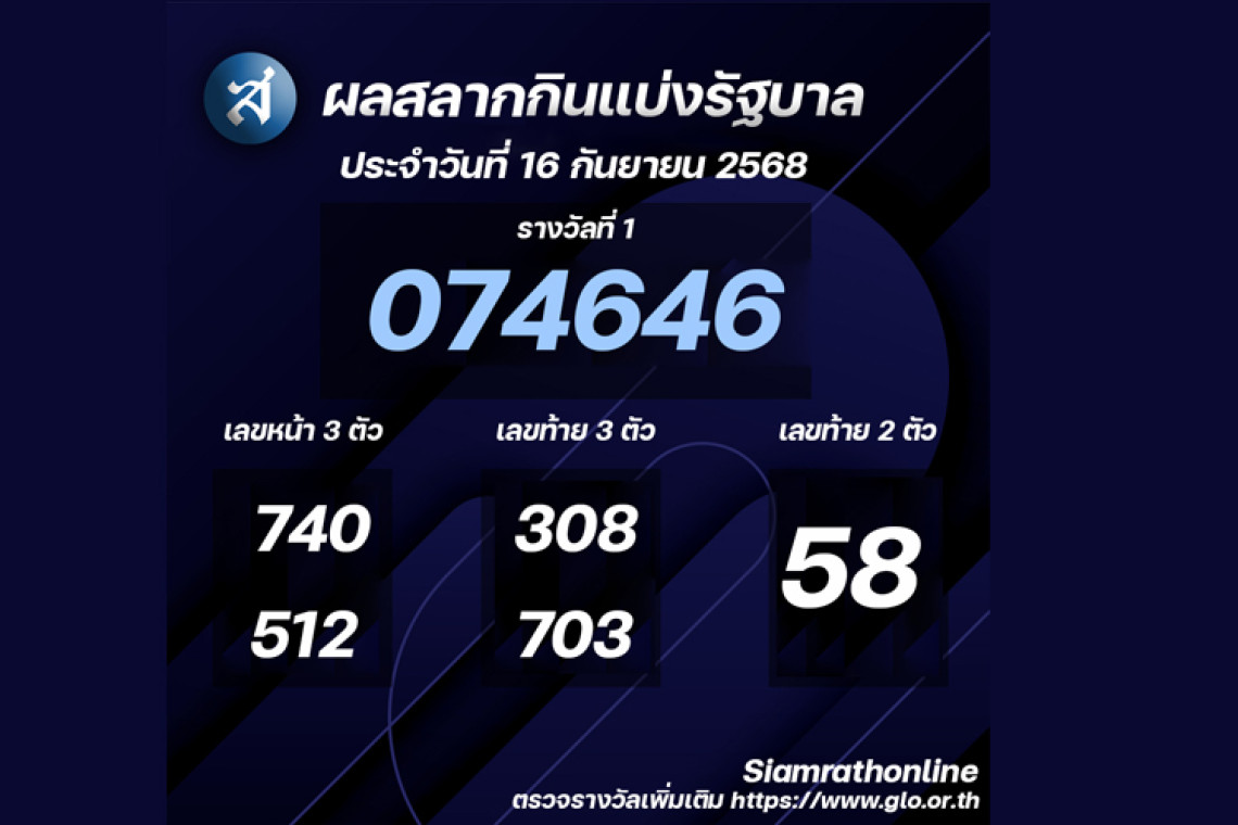 ผลสลากกินแบ่งรัฐบาลงวดประจำวันที่ 16 กันยายน 2568