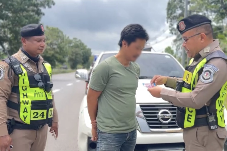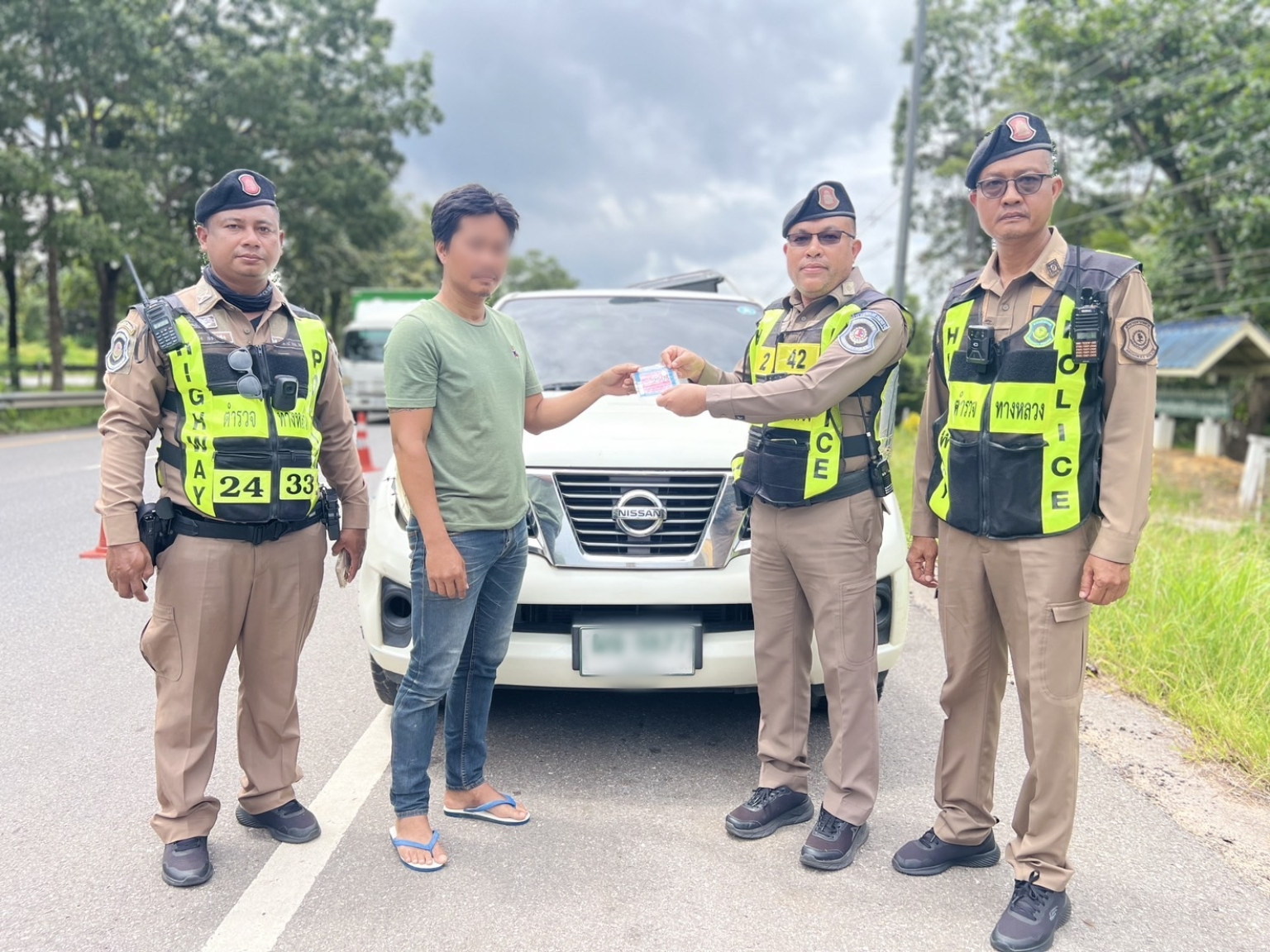 ผู้สื่อข่าวรายงานว่า ได้รับการเปิดเผยจาก พ.ต.ท.กล้า สมบัติพิบูลย์ สว.ส.ทล.4 กก2 บก.ทล.(ชุมพร)ว่า เมื่อเวลา 11.00 น. วันที่ 16 กันยายน 68 ขณะที่ ร.ต.อ.ชรัณ ปาณะศรี รอง สว. ส.ทล.4 กก.2 บก.ทล.(ชุมพร)ได้นำกำลัง เจ้าหน้าที่ตำรวจทางหลวง จำนวน 11 นาย ตั้งจุดตรวจกวดขันวินัยจราจรและป้องกันอาชญากรรมบนทล.41 กม.22 (ขาเข้า กทม.) ต.วิสัยใต้ อ.สวี จ.ชุมพร ต่อมาพบรถยนต์กระบะ ยี่ห้อ NISSAN สีขาว หมายเลขทะเบียน ผฉ 6877 ระยอง ขับผ่านเข้ามายังจุดตรวจ เจ้าหน้าที่ชุดสังเกตเห็นแผ่นป้ายภาษีประจำปีหน้ารถ พบว่า มีการขูดลบและใช้ปากกาแก้จากปี พ.ศ.2567 เป็นปี พ.ศ.2568 จึงขอให้จอดเพื่อตรวจสอบ เบื้องต้นทราบชื่อ นายนครินทร์ (สงวนนามสกุล) อายุ 39 ปี ภูมิลำเนาอยู่ที่ ม.10 ต.นาโพธิ์ อ.บุณฑริก จ.อุบลราชธานี เป็นคนขับรถคันดังกล่าว