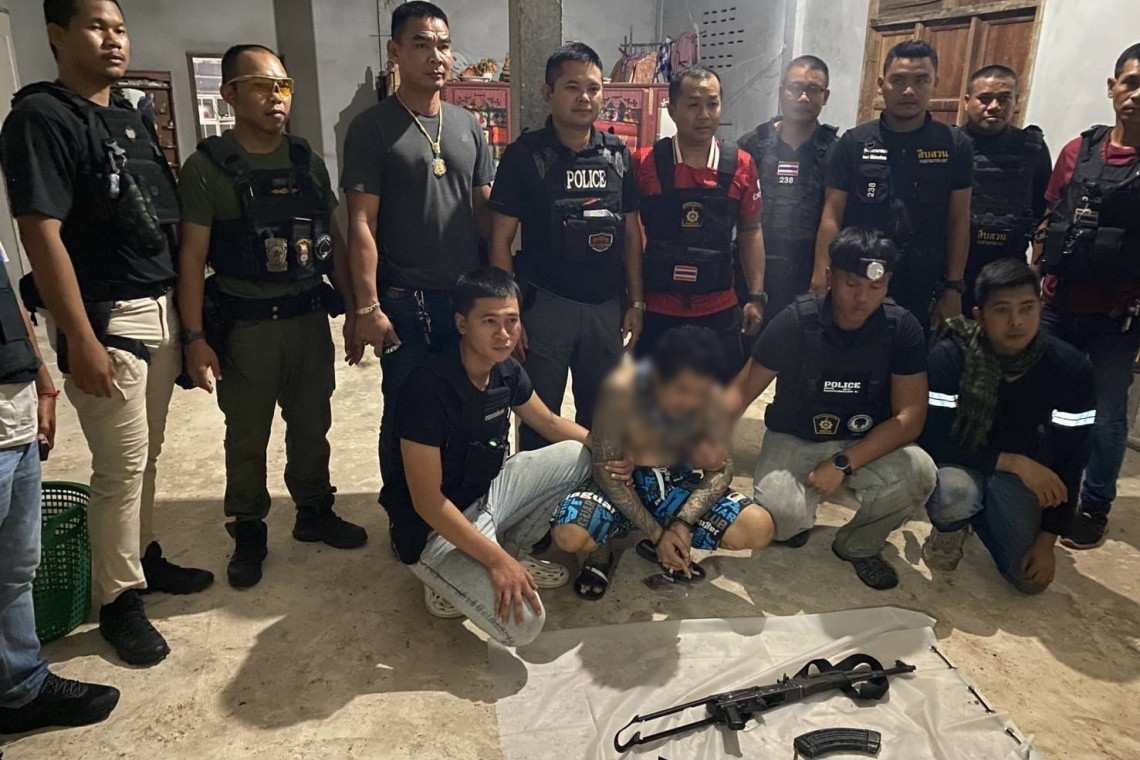 กระทั่งเวลา 01.30 น. ของวันที่ 17 ก.ย. 68 นายวีระศักดิ์ จึงได้ยินยอมออกมามอบตัว เจ้าหน้าที่ได้เข้าทำการจับกุมตัว นายวีระศักดิ์ พร้อมของกลางอาวุธปืนสงคราม (AK-47) พร้อมแม๊กกาซีน 1 อัน และกระสุน 7.62 มม. จำนวน 1 นัด ตรวจค้นภายในบ้าน พบกระสุนปืน ขนาด .380 อีกจำนวนหนึ่ง และยาบ้า จำนวน 3 เม็ด จากการสอบถาม นายวีระศักดิ์ รับว่าอาวุธปืนพร้อมเครื่องกระสุนและยาบ้าดังกล่าว เป็นของตนเองจริง โดยก่อนหน้านี้ได้เสพยาบ้าไปหลายเม็ด ทำให้เกิดอาการคลุ้มคลั่ง ดังกล่าว เจ้าหน้าที่จึงได้แจ้งข้อกล่าวหาว่า “มีอาวุธปืนและเครื่องกระสุนปืนซึ่งนายทะเบียนไม่สามารถออกใบอนุญาตไว้ในครอบครองโดยผิดกฎหมาย ,มีไว้ในครอบครองซึ่งยาเสพติดให้โทษประเภท 1 (เมทแอมเฟตามีน) โดยไม่ได้รับอนุญาต ,เสพยาเสพติดให้โทษประเภท 1 (เมทแอมเฟตามีน) โดยฝ่าฝืนต่อกฎหมาย” จากนั้นได้นำตัวผู้ต้องหาพร้อมของกลางทั้งหมดส่ง พงส.สภ.โนนคูณ ดำเนินคดีตามกฎหมายต่อไป