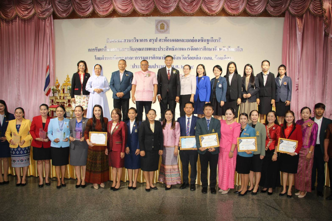นายอัมพร ภาระพันธ์ รองศึกษาธิการจังหวัดร้อยเอ็ด กล่าวรายงานว่า สำนักงานศึกษาธิการจังหวัดร้อยเอ็ดจัดเวทีเสวนาครั้งนี้ เพื่อสรุปผลการดำเนินงาน เสริมสร้างขวัญกำลังใจแก่ภาคีเครือข่าย และรับฟังข้อเสนอแนะเพื่อยกระดับคุณภาพการศึกษาในพื้นที่ โดยมีสถานศึกษาที่ได้รับการยกย่องเชิดชูเกียรติ ดังนี้ สถานศึกษาที่มี Best Practice การสร้างพลเมืองดี จำนวน 14 แห่ง,สถานศึกษาที่มี Best Practice ยกระดับความฉลาดรู้ (PISA) จำนวน 29 แห่ง,สถานศึกษาต้นแบบขับเคลื่อนคุณภาพโรงเรียนขนาดเล็ก จำนวน 17 แห่ง,สถานศึกษาต้นแบบ SDG4 (การศึกษาที่ยั่งยืน) จำนวน 13 แห่ง