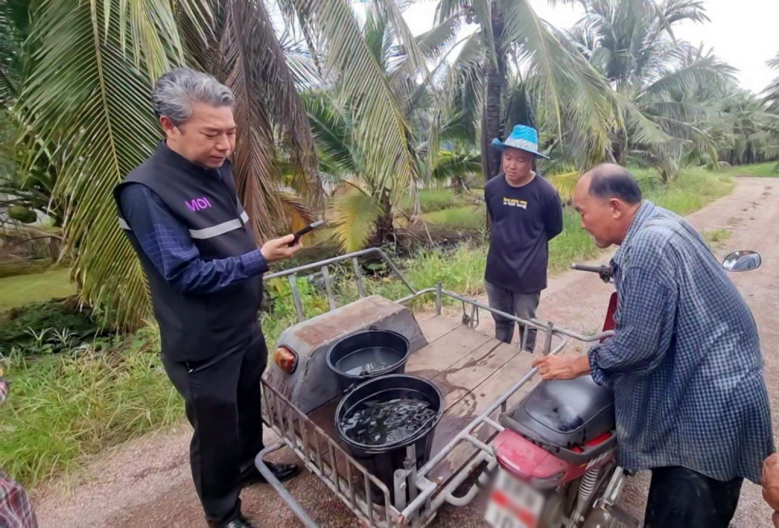 ด้านนายชนินทร์ บัวทอง อายุ 44 ปี เจ้าของสวนมะพร้าว หลังจากได้ทดลองน้ำ ในสวนมาทำการทดสอบแล้วปลาไม่ปรกติ ลอยหัว เผยว่า รู้สึกกังวลอย่างมาก เพราะหากปลายังอาศัยอยู่ไม่ได้ อาจหมายถึงน้ำมีสารพิษที่กระทบโดยตรงต่อผลผลิตมะพร้าวของตนที่ส่งออกต่างประเทศทั้งหมดหากตรวจพบสารพิษ “อยากให้หน่วยงานรีบตรวจสอบหาสาเหตุที่แท้จริง ก่อนทุกอย่างจะสายเกินไป”หากไม่พบสิ่งแปลกปลอมก็จะสบายใจ
