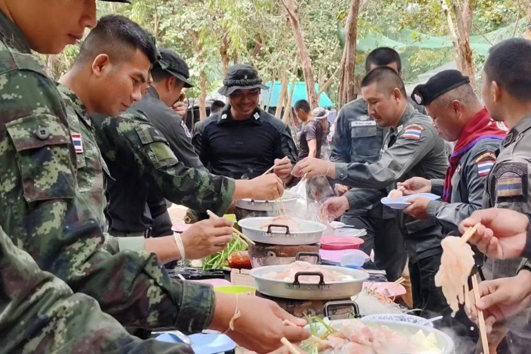 วันที่ 18 กันยายน 2568 ที่บริเวณชายแดนไทย–กัมพูชา ด้านเขาพระวิหาร อ.กันทรลักษ์ จ.ศรีสะเกษ ได้มีการจัดเลี้ยงหมูกระทะกว่า 100 ชุด เพื่อเป็นขวัญและกำลังใจแก่เจ้าหน้าที่ชายแดน โดยได้รับการสนับสนุนจาก หลวงตาสินทรัพย์ จรณธัมโม ประธานที่พักสงฆ์วัดป่าบ่อน้ำพระอินทร์ จังหวัดอุบลราชธานี การมอบอาหารพิเศษในครั้งนี้ มีจุดมุ่งหมายเพื่อให้เจ้าหน้าที่ได้ผ่อนคลายจากภารกิจ และตอกย้ำว่าคนแนวหลังยังคงห่วงใย ส่งใจไปยังแนวหน้า “รั้วของชาติ” ผู้เสียสละยืนหยัดปกป้องอธิปไตยของแผ่นดิน “เสียงปืนอาจเงียบลง แต่หัวใจของผู้ปกป้องแผ่นดินยังไม่เคยหยุดเต้น หลวงตาสินทรัพย์ส่งความเมตตาสู่แนวหน้าที่ไม่เคยลืมว่า พวกเขายังมี ‘คนไทยทั้งประเทศ’ อยู่ข้างหลัง” เจ้าหน้าที่หลายท่านยังคงปฏิบัติภารกิจประจำการอยู่ที่ฐานหน้าแนวชายแดน นับตั้งแต่ช่วงก่อนเหตุการณ์ปะทะ จนถึงปัจจุบัน แม้จะมีการหยุดยิงแล้ว ก็ยังไม่มีโอกาสได้พักกลับบ้านไปเยี่ยมครอบครัว แต่ทุกนายยังคงมีกำลังใจเต็มเปี่ยม พร้อมปฏิบัติหน้าที่ตลอดเวลา