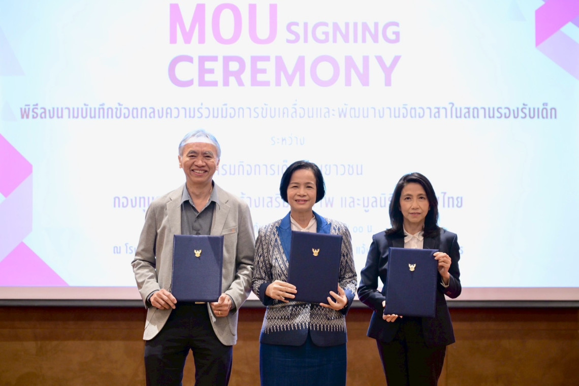 สสส. สานพลัง ดย.-มูลนิธิสุขภาพไทย MOU ใช้สุขภาวะทางปัญญาพัฒนาจิตอาสา-บุคลากรในสถานรองรับเด็ก ให้มีภูมิคุ้มกันทางใจ พร้อมช่วยเหลือเด็ก-เยาวชน ให้เติบโตมีคุณภาพชีวิตดี