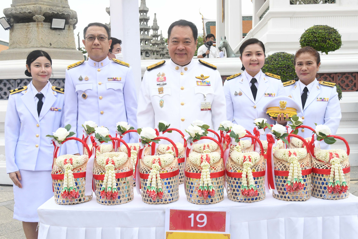 ต่อมาในเวลา 08.00 น. นายภูมิธรรมเป็นประธานในพิธีวางพานพุ่มดอกไม้ถวายราชสักการะ ณ พระวิหารหลวง วัดสุทัศนเทพวราราม โดยมีผู้บริหารระดับสูงเข้าร่วม อาทิ พันตำรวจเอก ทวี สอดส่อง รัฐมนตรีว่าการกระทรวงยุติธรรม, พล.อ.ณัฐพล นาคพาณิชย์ ปฏิบัติหน้าที่แทน รัฐมนตรีว่าการกระทรวงกลาโหม พร้อมภริยา, นายจุลพันธ์ อมรวิวัฒน์ รัฐมนตรีช่วยว่าการกระทรวงการคลัง, นายสุชาติ ชมกลิ่น รัฐมนตรีช่วยว่าการกระทรวงพาณิชย์, นางยุพา ทวีวัฒนะกิจบวร ปลัดสำนักนายกรัฐมนตรี, พญ.วันทนีย์ วัฒนะ ปลัดกรุงเทพมหานคร และ นายชยธรรม์ พรหมศร ปลัดกระทรวงคมนาคม