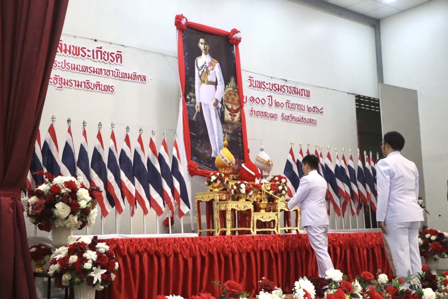 พิธีจัดขึ้นเพื่อเทิดพระเกียรติ แสดงความจงรักภักดี และน้อมรำลึกในพระมหากรุณาธิคุณอันหาที่สุดมิได้ของพระองค์ที่มีต่อปวงชนชาวไทย โดยมี นายอำเภอสบเมย เป็นประธาน พร้อมด้วยหัวหน้าส่วนราชการ ข้าราชการพลเรือน ทหาร ตำรวจ องค์กรปกครองส่วนท้องถิ่น และหน่วยงานรัฐวิสาหกิจ ร่วมในพิธี ณ หอประชุมโรงเรียนสบเมยวิทยาคม อำเภอสบเมย จังหวัดแม่ฮ่องสอน