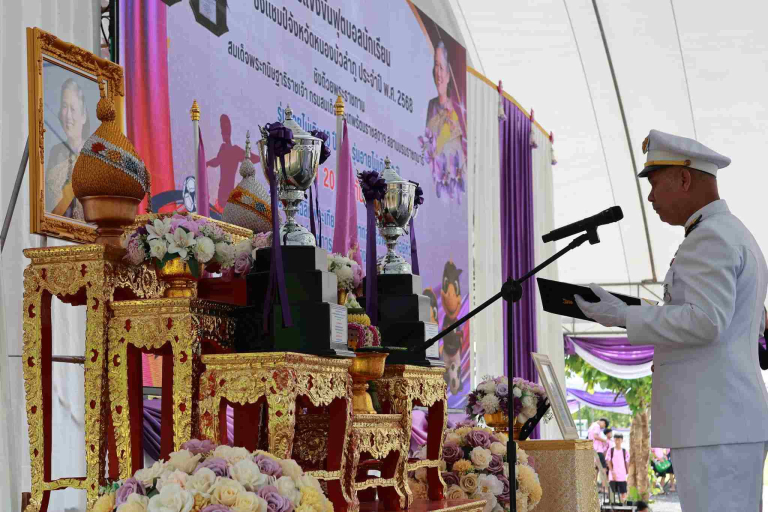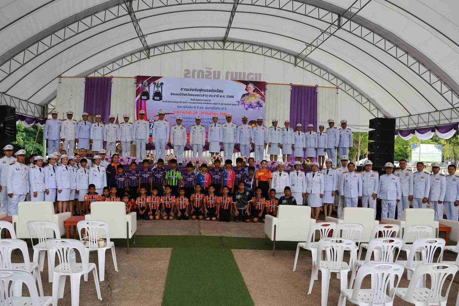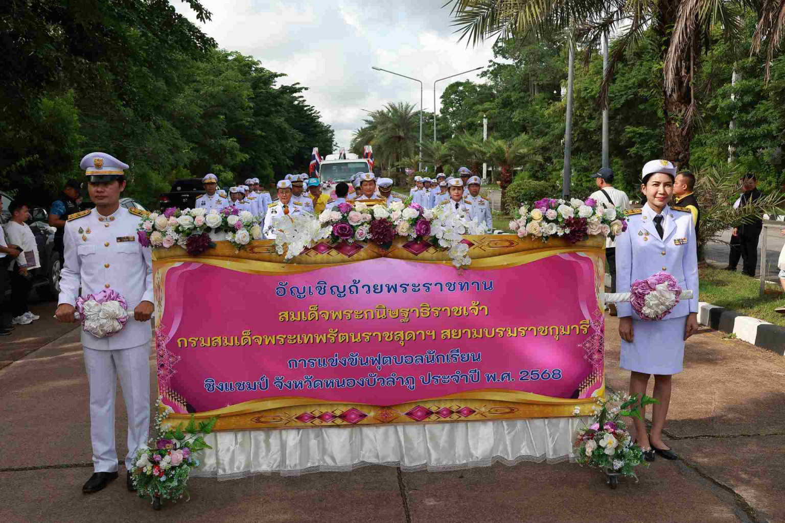 เมื่อวันที่ 20 ก.ย.68 ที่ลานปิยมิตร ศูนย์ราชการจังหวัดหนองบัวลำภู อำเภอเมืองหนองบัวลำภู นายสุรศักดิ์ อักษรกุล ผู้ว่าราชการจังหวัดหนองบัวลำภู เป็นประธานในพิธีอัญเชิญถ้วยพระราชทานสมเด็จพระกนิษฐาธิราชเจ้า กรมสมเด็จพระเทพรัตนราชสุดาฯ สยามบรมราชกุมารี ในกิจกรรมการแข่งขันฟุตบอลนักเรียน ชิงแชมป์จังหวัดหนองบัวลำภู ประจำปี พ.ศ. 2568 โดยมีหัวหน้าส่วนราชการ ผู้บริหารองค์กรปกครองส่วนท้องถิ่น ข้าราชการ เจ้าหน้าที่ นักกีฬา และผู้ฝึกสอน ร่วมในพิธีอย่างพร้อมเพรียง ก่อนจะเคลื่อนขบวนอัญเชิญถ้วยพระราชทานไปยังสนามแข่งขัน ณ ลานกีฬาเฉลิมพระเกียรติพระบาทสมเด็จพระเจ้าอยู่หัวฯ ศูนย์ราชการจังหวัดหนองบัวลำภู