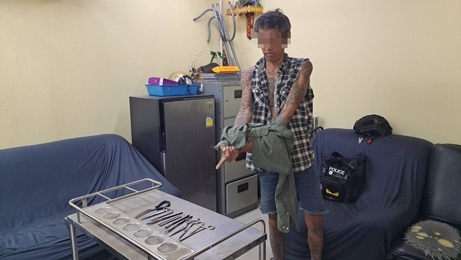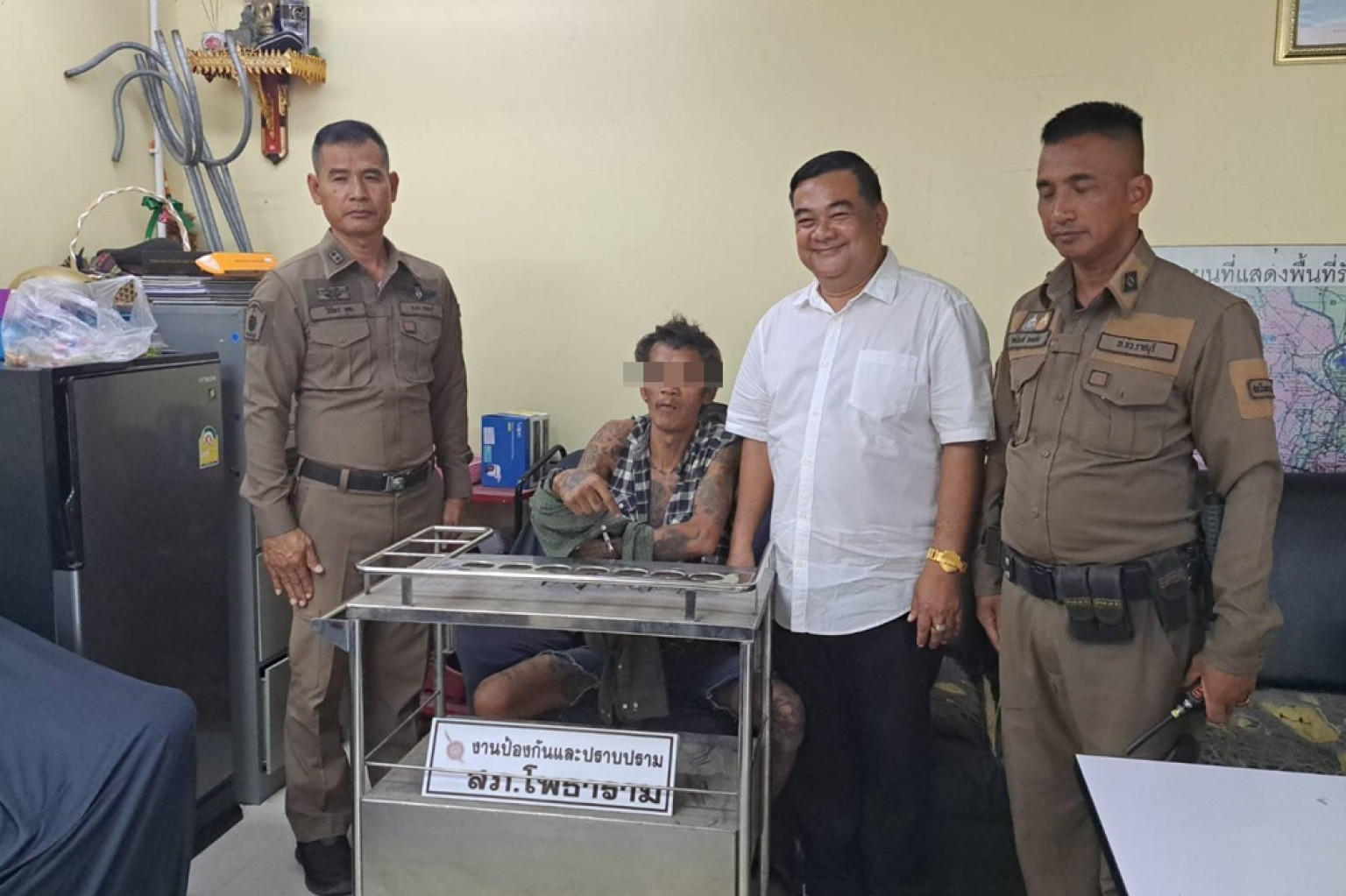 วันที่ 21ก.ย.68 ศูนย์วิทยุ สภ.โพธาราม ได้รับแจ้งจากนายฐิติพันธ์ บัวภู ผู้ใหญ่บ้านม.4 ต.บ้านฆ้อง ว่าได้จับคนร้ายก่อเหตุลักทรัพย์ใน รพ.สต.บ้านฆ้อง-ดีบอน พื้นที่ ม.4 ต.บ้านฆ้อง อ.โพธาราม จ.ราชบุรี จึงประสาน ร.ต.อ.รัฐนินท์ เกษมสิทธิ์ชัยกุล รอง สว.สอบสวน สภ.โพธาราม พร้อมชุดสืบสวน สายตรวจตำบลบ้านฆ้อง สายตรวจรถยนต์ ไปตรวจสอบที่เกิดเหตุ ภายในบ้านพักร้าง หลัง รพ.สต. พบนายวรชัน หรือตั้ม นิลขาว อายุ 43 ปี อยู่อำเภอพระประแดง จังหวัดสมุทรปราการ อยู่ในสภาพคล้ายคนเมายา ตามตัวมีรอยสักทั้งตัว นอกจากนั้นยังพบว่านายตั้ม ผู้ต้องหานั้นกำลังนั่งปลอกสายไฟอยู่ และยอมรับสารภาพว่าตนได้ขโมยสายไฟภายใน รพ.สต.ไปจริง โดยจะนำสายทองแดงไปขายเพื่อหาเงินซื้อข้าวให้พ่อที่นอนติดเตียงและตนเองก็จะไปซื้อยาบ้าเสพ