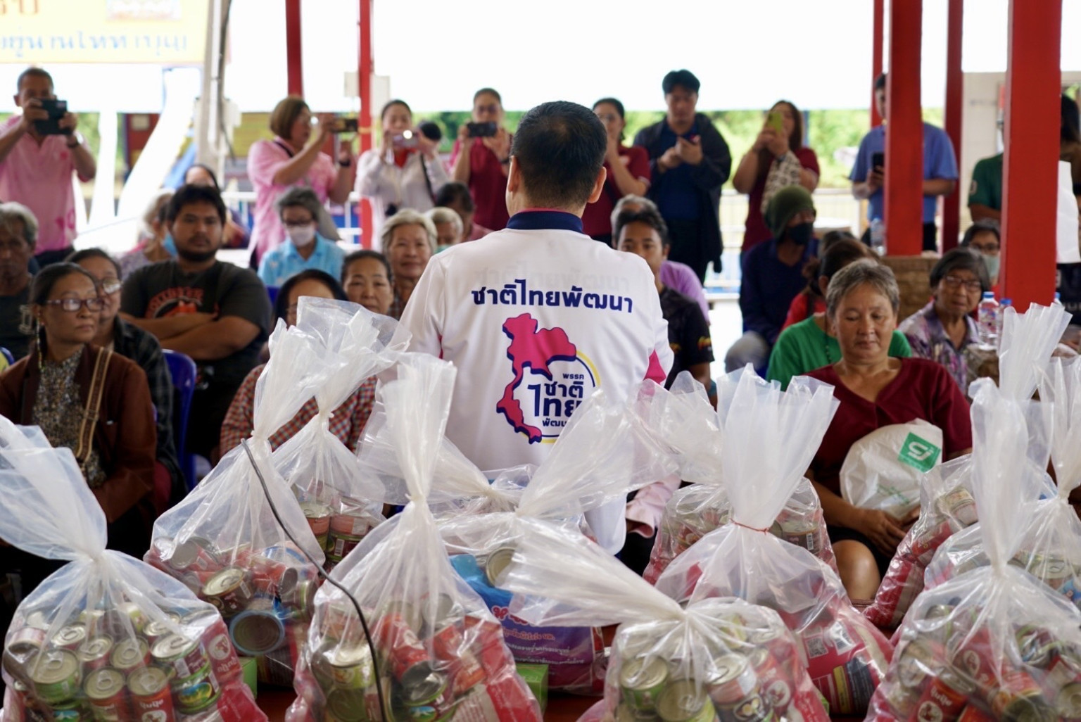 โดยเมื่อนายวราวุธพบปะกับพี่น้องชาวจังหวัดสุพรรณบุรี ก็ได้รีบแจ้งว่า เดิมนายสรชัด สุจิตต์ สมาชิกสภาผู้แทนราษฎรจังหวัดสุพรรณบุรี เขต 1 พรรคชาติไทยพัฒนา จะมาด้วยกัน แต่เมื่อเช้าตรวจพบว่า ติดไข้หวัดใหญ่สายพันธุ์เอ จึงได้ให้ไปพบแพทย์และพักรักษาตัว ทั้งนี้ นายวราวุธได้กล่าวว่า “คนสุพรรณไม่ว่าอยู่ที่ไหนก็ทำงานได้หมด และขอบอกถึงสิ่งที่ผมทำ เพราะหากถามว่าภูมิใจไทยมาชวนหรือไม่ ก็ต้องบอกว่าเขาก็มาชวน แต่วราวุธทำงานก็ยึดแนวทางการทำงานตามพ่อบรรหารคืออยู่แล้วก็อยู่กันจนจบ ไม่คิดโดดไปโดดมา เลือกตั้งแล้วค่อยมาว่ากันใหม่ หากรอบนี้วราวุธไปกับเขาก็รับประกันได้เลยว่า ที่เขาด่าว่าเป็นปลาไหลๆๆน่ะ โดนด่าอีกแน่ๆ จึงต้องทำตามในสิ่งที่พ่อบรรหารเคยทำไว้ ซึ่งหลายคนบอกว่าเป็นกำลังใจให้ก็ต้องขอขอบคุณ แต่ขอบอกพวกเราทุกคนเลยว่า ไม่ว่าจะอยู่ตำแหน่งอะไร จะอยู่ทางไหนก็แล้วแต่ คนสุพรรณต้องได้รับการช่วยเหลือ“ ซึ่งเมื่อนายวราวุธกล่าวจบได้มีเสียงตอบจากชาวบ้านว่า เลือกเมื่อไหร่ก็เลือกอยู่แล้ว ไม่เคยเปลี่ยน ทำให้นายวราวุธได้เข้าไปกอดและกล่าวขอบคุณ
