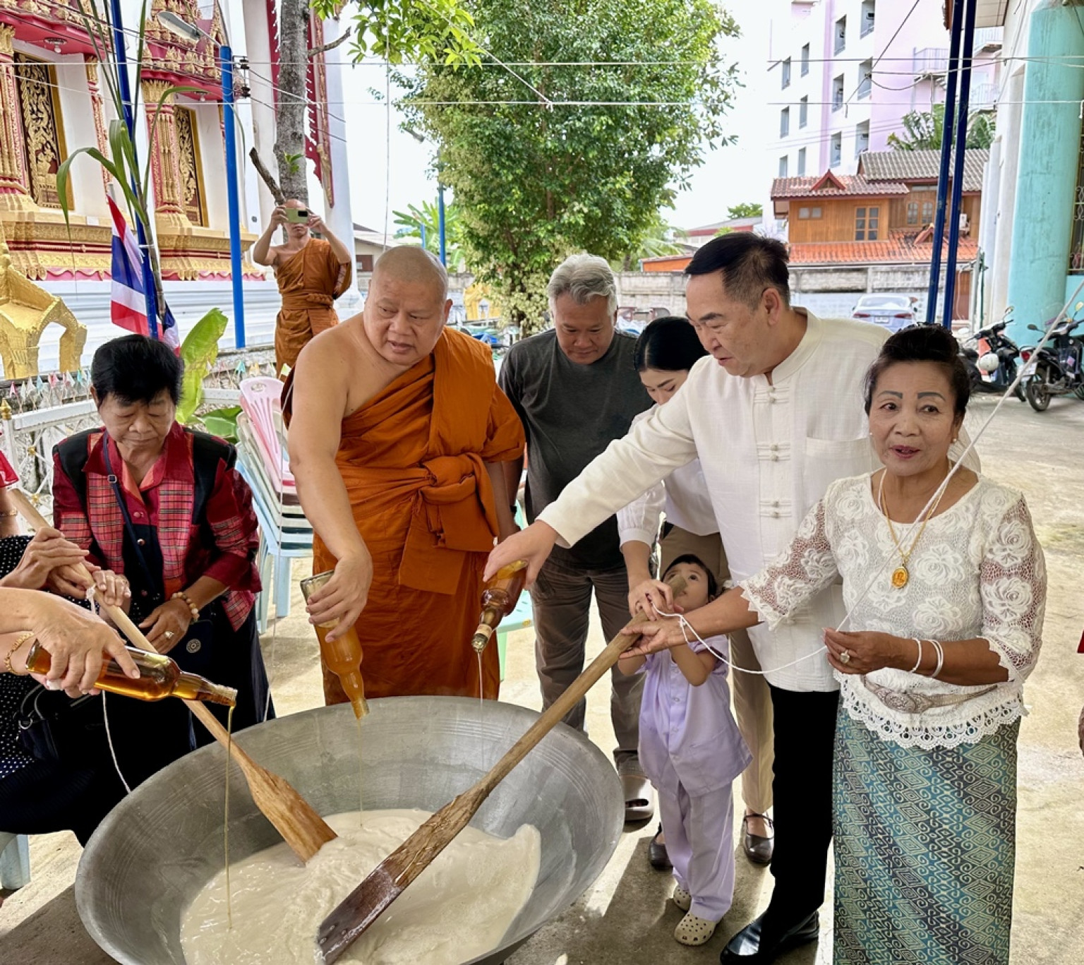 พิธีกวนข้าวทิพย์ “กวนข้าวทิพย์” เป็นประเพณีของพุทธศาสนิกชนที่ทำสืบต่อกันมาเพื่อระลึกถึงเหตุการณ์ในพุทธกาลที่นางสุชาดาได้ถวายข้าวมธุปายาสแด่พระพุทธเจ้าก่อนการตรัสรู้ ซึ่งเชื่อว่าการบริโภคข้าวทิพย์นี้จะนำมาซึ่งสิริมงคล โชคลาภ และการปราศจากโรคภัย ประเพณีนี้สะท้อนความสามัคคีในชุมชน โดยชาวบ้านจะร่วมแรงร่วมใจกันเตรียมวัตถุดิบและกวนข้าวทิพย์