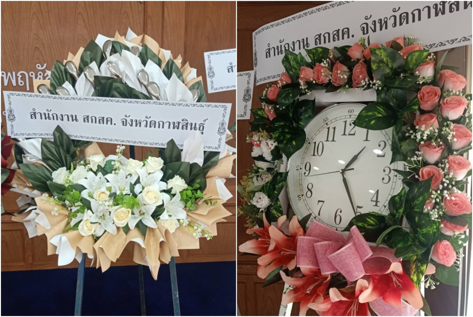 ทั้งนี้ ได้รับความร่วมมือจากนายประดิษฐ์ ญาณประเสริฐ ผู้อำนวยการวิทยาลัยเทคนิคกาฬสินธุ์ มอบหมายนางพัชฏาพร ภูทองขาว, นางสาวพัชรินทร์ เหล่าไชย และนางสาวเบญจมาภรณ์ สัตตะ อาจารย์วิทยาลัยเทคนิคกาฬสินธุ์ ร่วมเป็นวิทยากรพิเศษให้การอบรมและสาธิตขั้นตอนการทำพวงหรีดจากดอกไม้ประดิษฐ์ด้วย